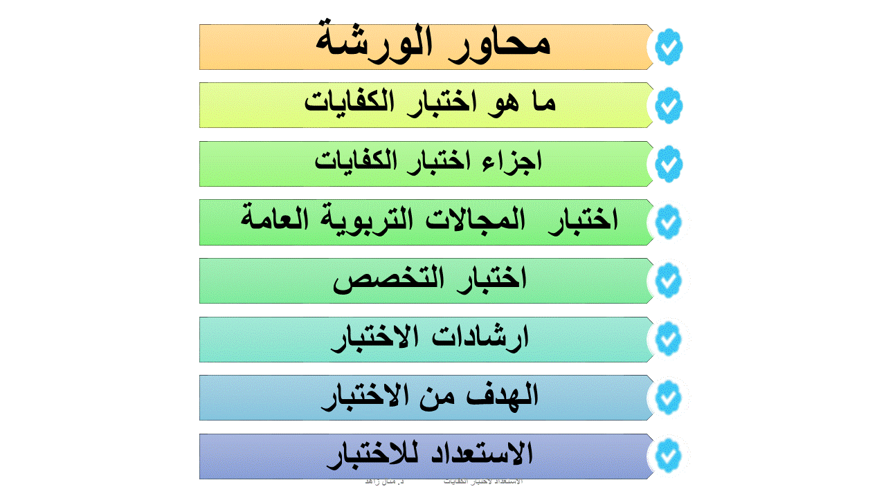 تناولت الورشة تعريفا باختبار الكفايات وطبيعة اسئلته ومجالاتها وتعليمات الاختبار والموضوعات الرئيسية التي تكون فيها الأسئلة التربوية ثم انتقلت المدربة الى حل نماذج متعددة من اختبارات الكفايات مع المتدربات.