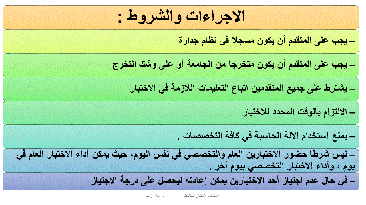 احتوت الورشة على عرض مرئي واوراق عمل تحوي عددا من الاسئلة المحلولة للخريجات لمساعدتهن على اجتياز الاختبار.