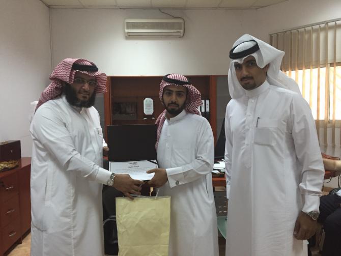 قامت وحدة الخريجين بكلية الآداب والعلوم بوادي الدواسر - بتوجيه من د. ناصر المهيزع عميد الكلية- بتكريم الطالب/ عبدالرحمن بن محمد الدوسري وذلك لتفوقه العلمي في دراسته الجامعية؛ حيث حصل على المركز الأول على مستوى جامعة الأمير سطام بن عبدالعزيز، وقد قام بتكريمه الدكتور عبدالله بن محمد آل تميم وكيل الكلية.