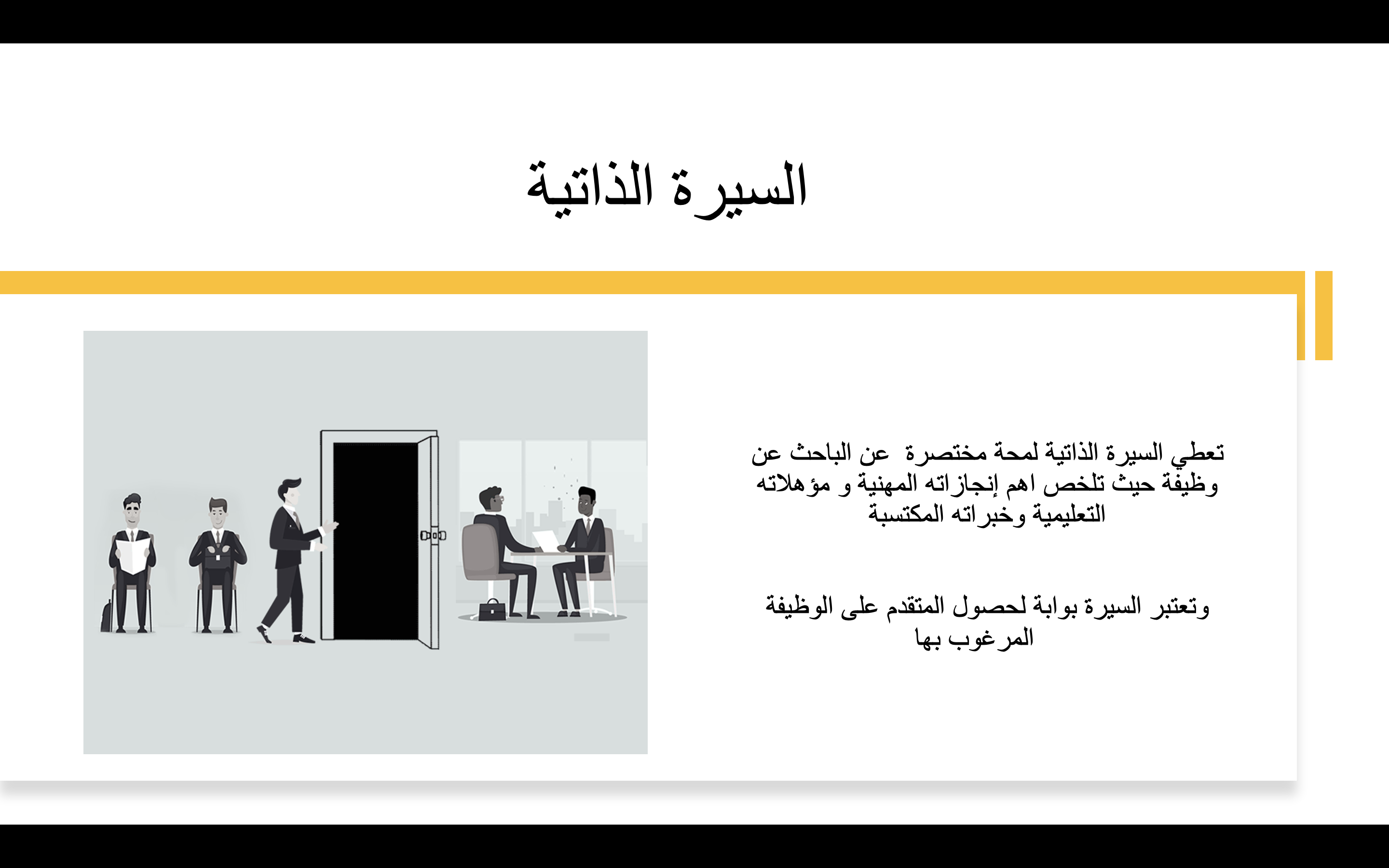 وقد وضحت أ. نوف بأن السيرة الذاتية تعتبر حلقة وصل بين المتقدم ومسؤول التوظيف بالجهة, وبناء عليه فلا بد من اتقان صياغتها وتنسيقها بصورة تمكن من جذب أكبر قدر من الفرص الوظيفية.
