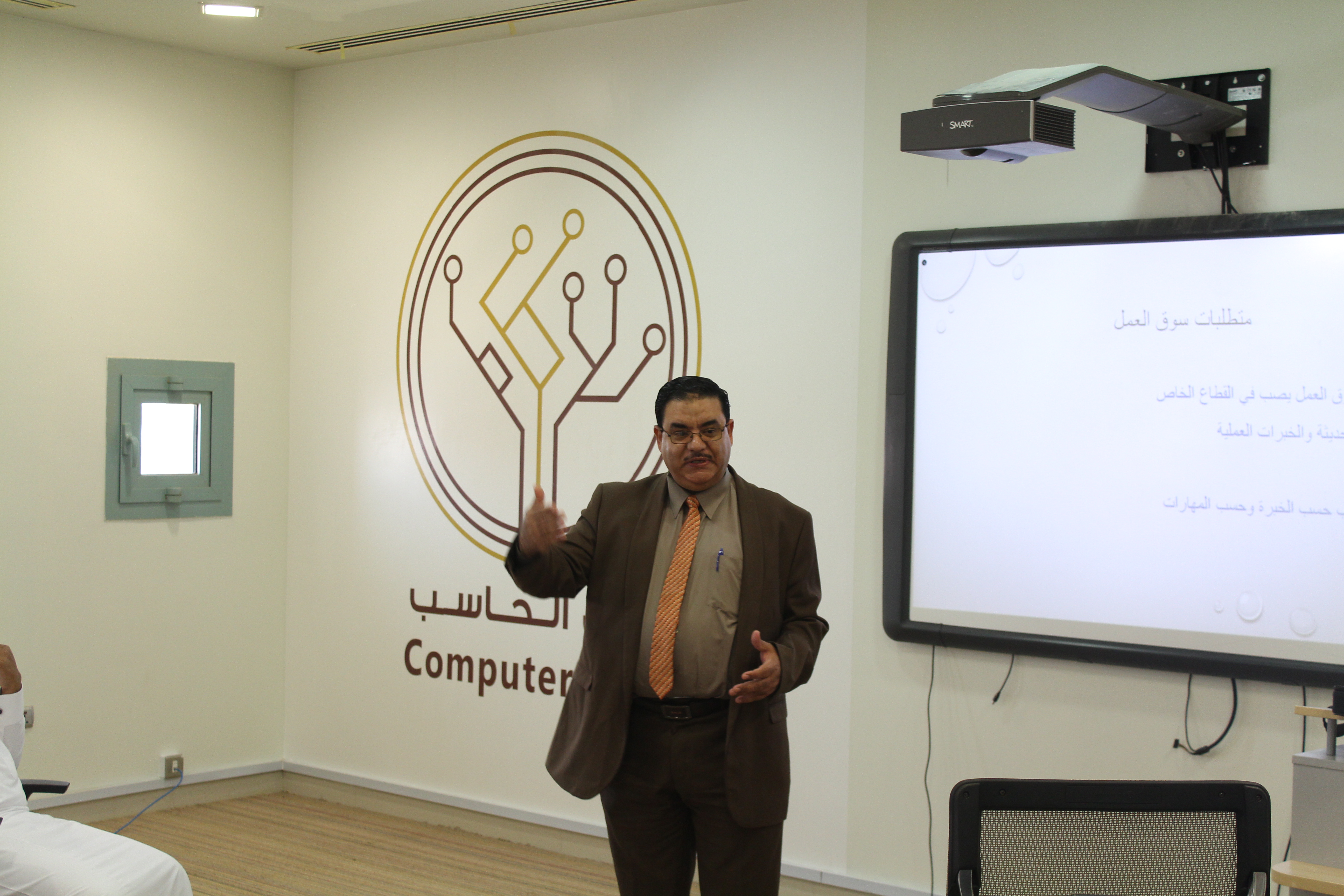 اقامت وحدة الخريجين في الكلية دورة بعنوان "الشهادات المهنية ودورها في التوظيف" يوم الثلاثاء ٢١/٧/١٤٣٨هـ ، القاها المهندس مصطفى عبد الوهاب.