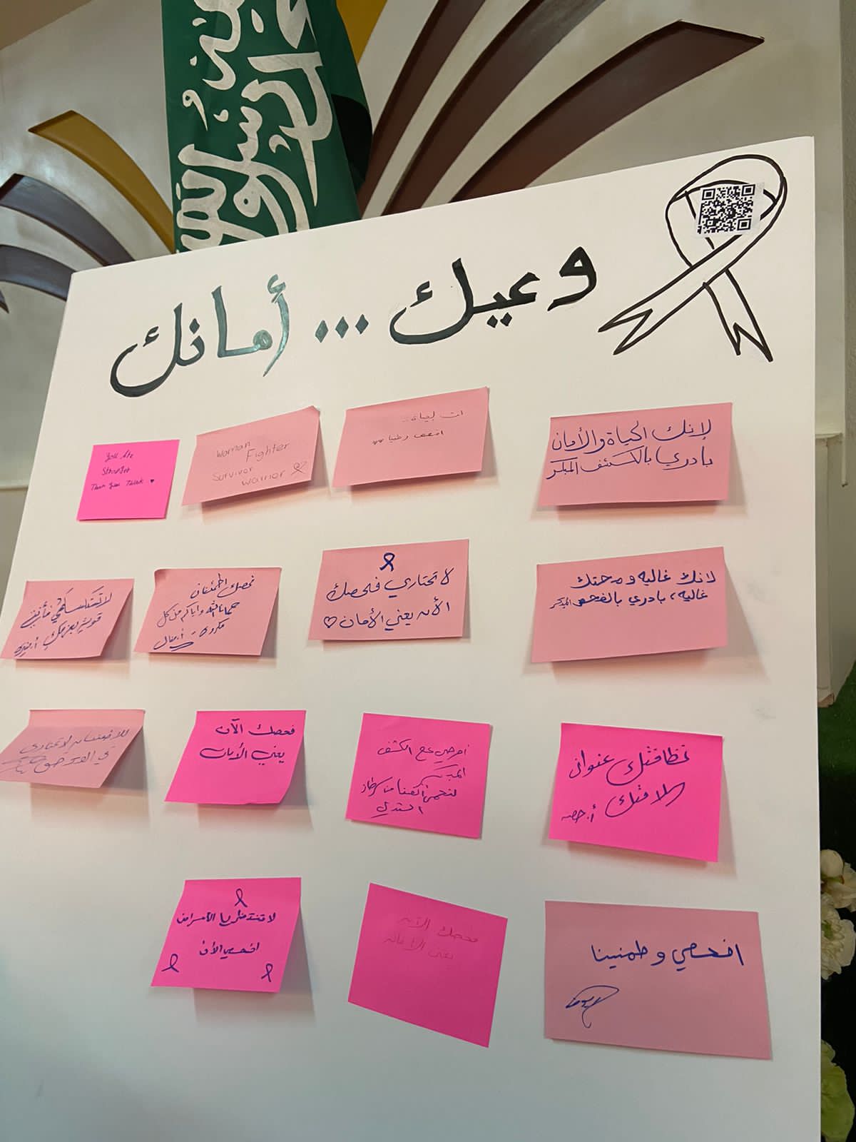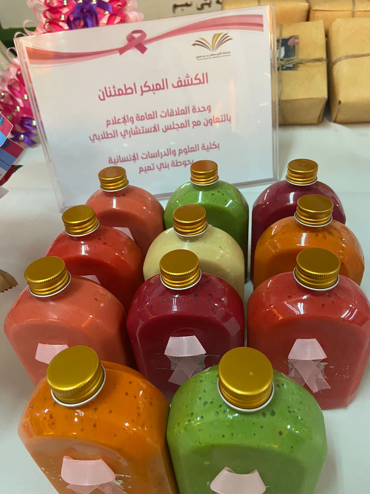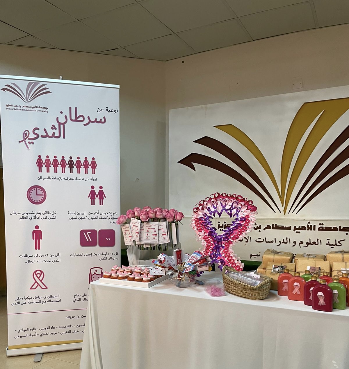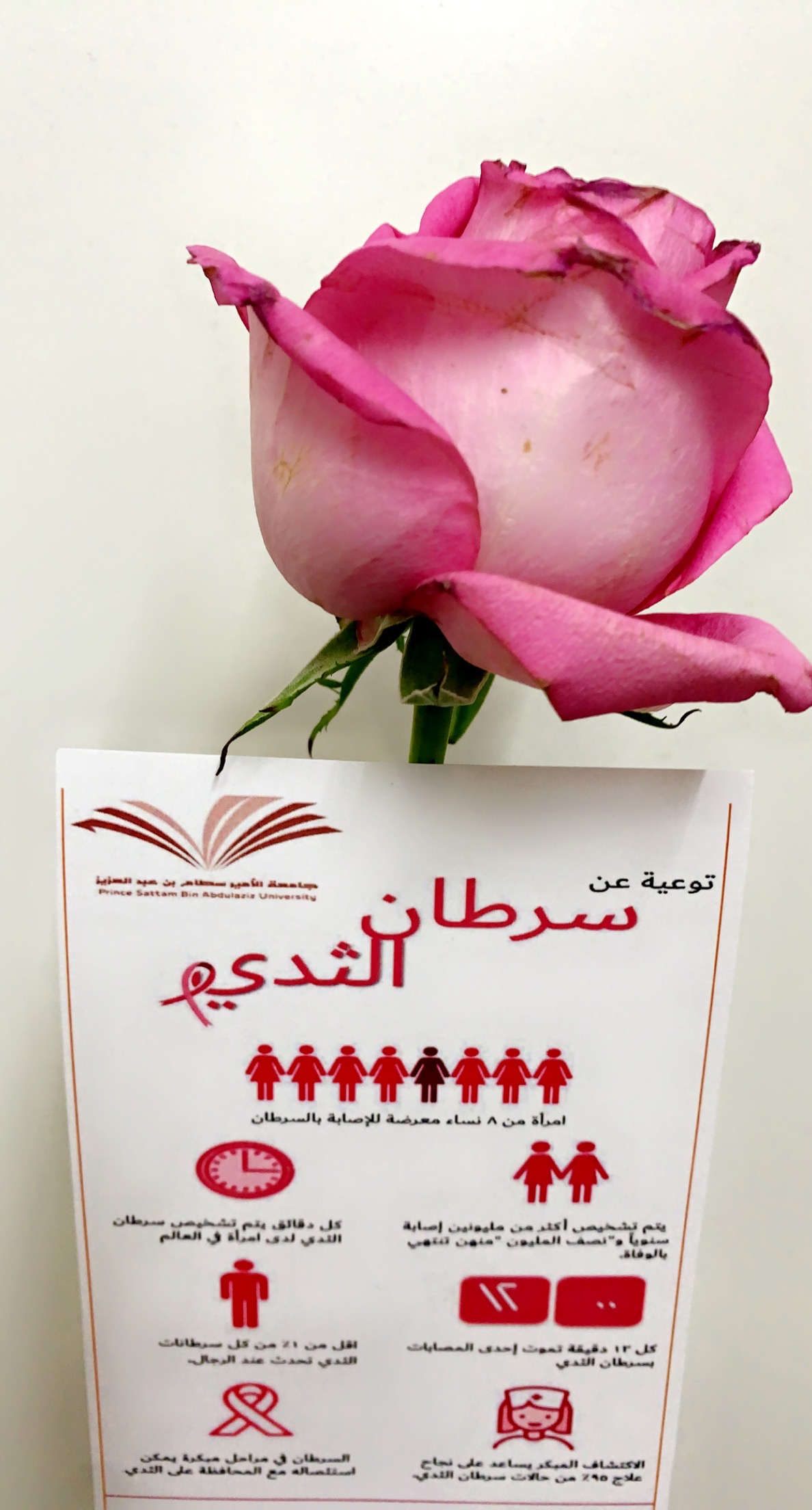 يعتبر سرطان الثدي من أكثر أنواع الأورام التي تصيب النساء في العالم المتقدم والعالم النامي على حدّ سواء، فهناك حملات صحية تحدث في كل عام من شهر أكتوبر في جميع أنحاء العالم تهدف إلى تثقيف الناس حول الوقاية من سرطان الثدي وعلاجه، ويتخذ اللون الوردي رمزاً لذلك سمي أكتوبر الوردي، ولأهمية التوعية بهذا المرض وبرعاية كريمة من سعادة عميدة كلية العلوم والدراسات الإنسانية بحوطة بني تميم د. حصة بنت سعود الهزاني نظمت وحدة العلاقات العامة بالتعاون مع المجلس الاستشاري الطلابي بإشراف أ. تهاني عبد الرحمن الجويعد وأ. منيرة إبراهيم التميمي فعالية بعنوان (الكشف المبكر اطمئنان) في يوم الأحد الموافق: 1443/3/18هـ، بساحة الكلية.