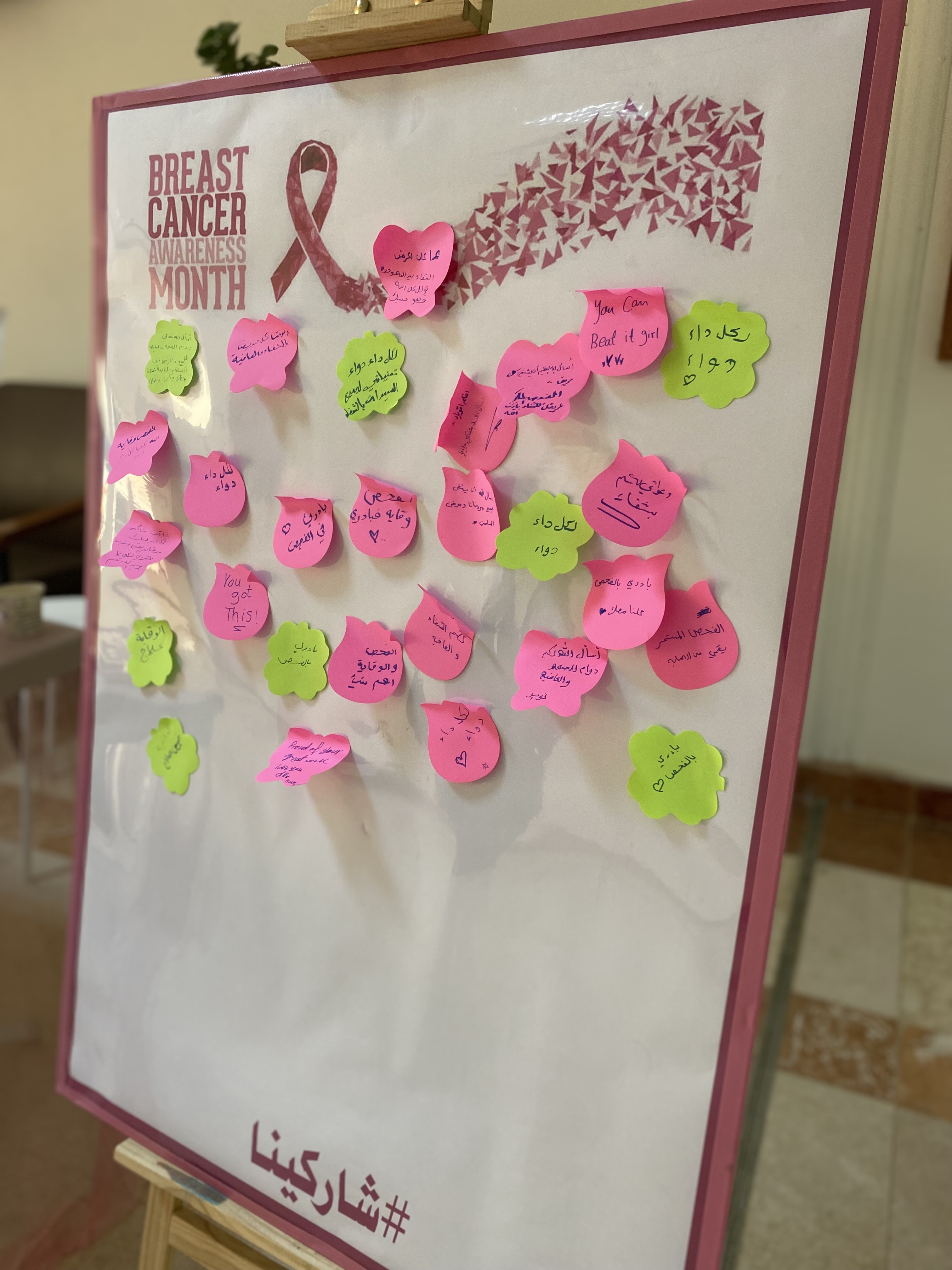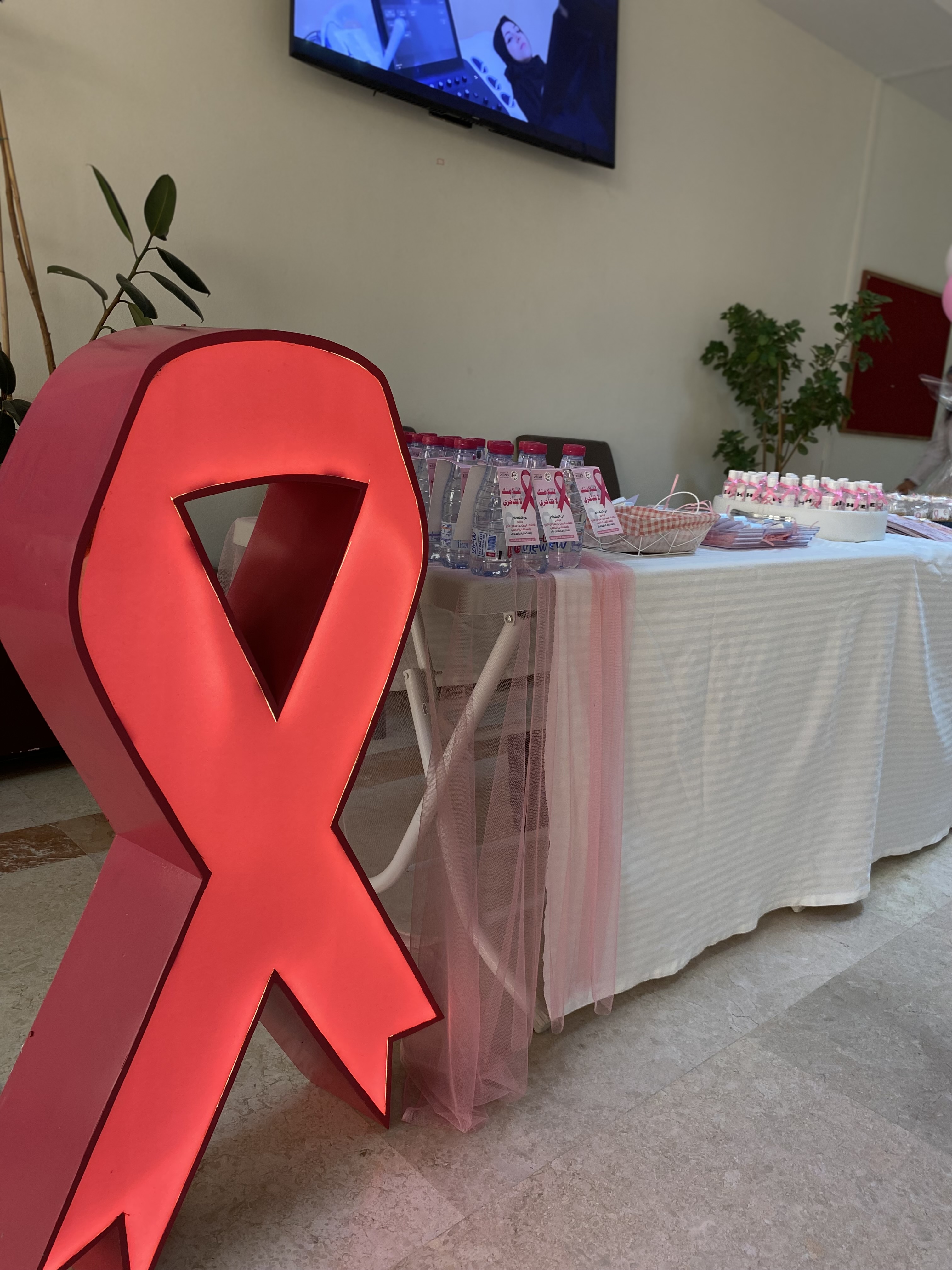بمناسبة الشهر العالمي للتوعية بسرطان الثدي شهر أكتوبر أقامت وحدة العلاقات والإعلام بكلية العلوم والدراسات الإنسانية في الخرج (أقسام الطالبات) وتحت إشراف وحدة العلاقات العامة والإعلام بجامعة الأمير سطام بن عبد العزيز وبالتعاون مع المستشفى الجامعي ركنًا توعويًا للتوعية بسرطان الثدي وذلك يوم الأربعاء 14/3/1443هـ في تمام الساعة العاشرة والنصف صباحًا وذلك في بهو الكلية بالدور الأرضي.