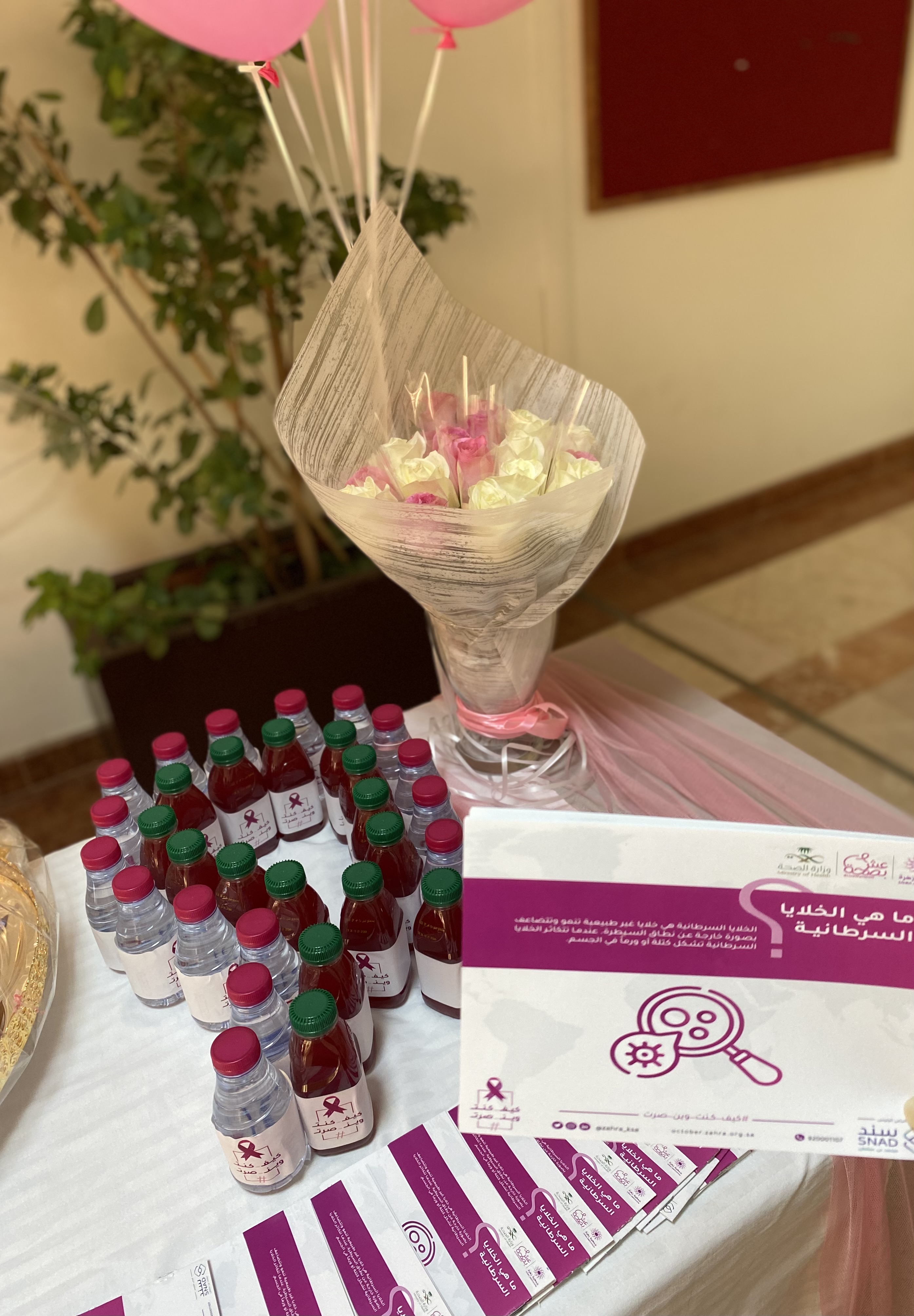 وقد لاقى الركن حضورًا متميزًا من منسوبات الكلية وعلى شرف حضور وكيلة الكلية الدكتورة نوال بنت عبد العزيز الفهيد، وكان للمنسوبات كلمات رائعة شاركن فيها بمشاعرهن ودعائهن للتوعية بسرطان الثدي.