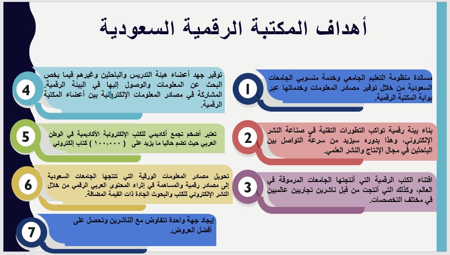 قدمتها أ. سال معاوية- المحاضر في قسم الرياضيات ورئيسة وحدة التعليم الالكتروني- وتهدف الى تمكين الطالبات من الوصول للمصادر التي توفرها المكتبة الرقمية السعودية وذلك بتعريف الطالبات بالمكتبة الرقمية السعودية وخدماتها والمصادر وقواعد البيانات التي توفرها وطريقة الدخول للمكتبة عبر بوابة التعليم الالكتروني وأيضا بتعريفهن على طرق وآليات البحث في المكتبات الرقمية بشكل عام والمكتبة الرقمية السعودية بشكل خاص.