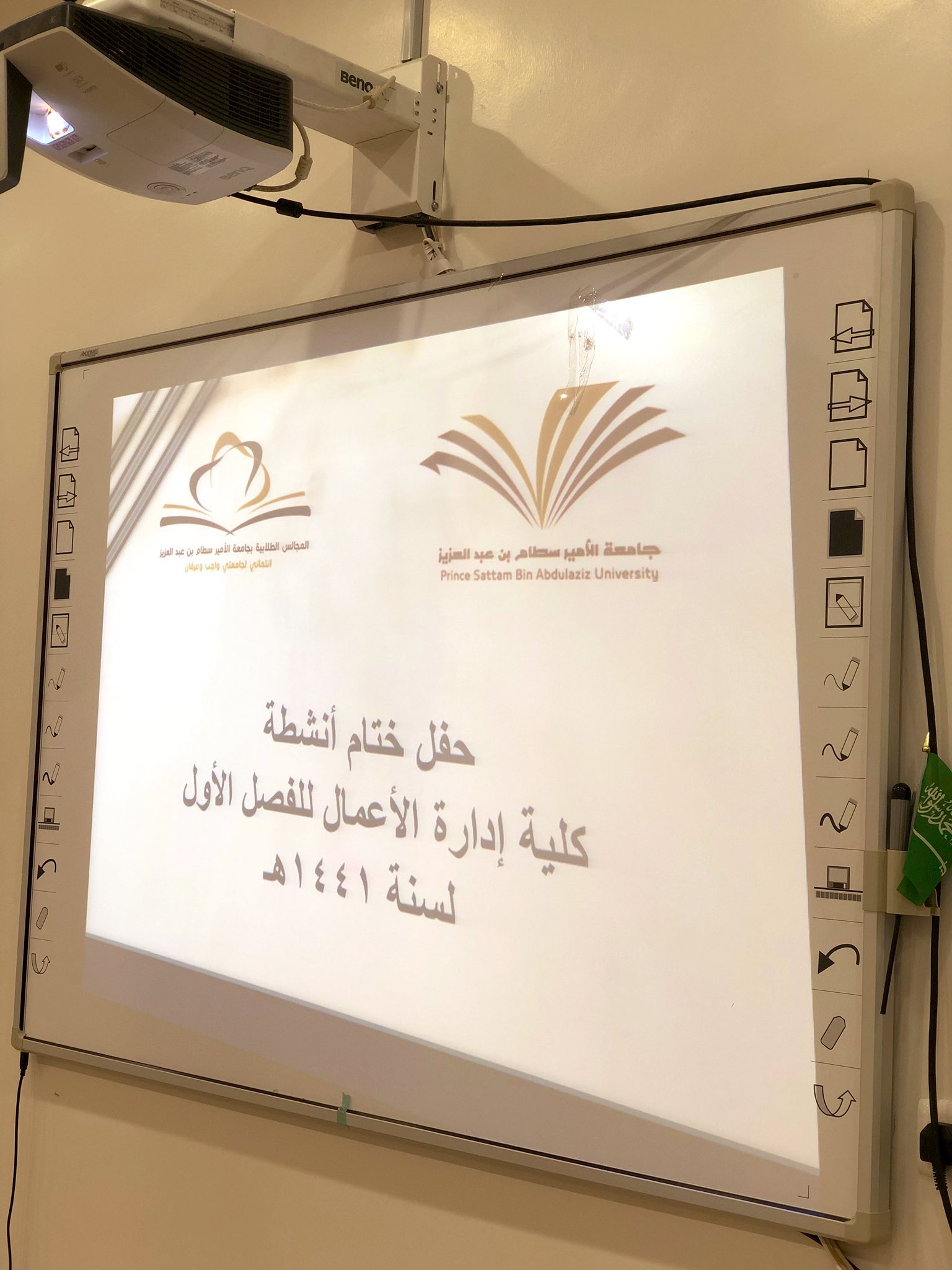 نظمت وحدة العمل الطلابي متمثلة في المجلس الاستشاري بكلية إدارة الاعمال بالخرج يوم الثلاثاء الموافق 6/4/1441هـ ،حفلاً بمناسبة ختام الأنشطة الطلابية للفصل الدراسي الأول من العام 1441هـ ، حيث بدأ الحفل في الساعة العاشرة صباحًا بحضور وكيلة الكلية لشؤون الطالبات د.وردة الدبل ورئيسات وأعضاء الأقسام والإداريات وطالبات الكلية . افتتح الحفل بمقدمة ترحيبية بوكيلة الكلية الدكتورة وردة الدبل و بأعضاء هيئة التدريس و الإداريات و الطالبات المتميزات.