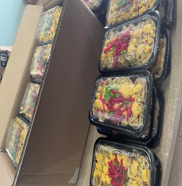 كما تضمن البرنامج عرضاّ مرئياّ على الشاشات للتوعية بأهمية الأخوة الانسانية واختتم البرنامج بتوزيع وجبات إفطار صباحي على الجاليات المختلفة حول مبنى الكلية.
