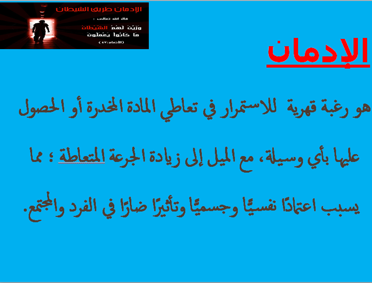 نفذت وحدة العمل الطلابي بكلية التربية قسم الطالبات بوادي الدواسر وبالتعاون مع اللجنة المشتركة مع المديرية العامة لمكافحة المخدرات ورشة عمل بعنوان تعاطي المخدرات الأسباب والآثار والأضرار الناجمة عنه من الناحية (الصحية والاجتماعية والنفسية والاقتصادية والأمنية) وذلك ضمن البرامج التدريبية والتوعوية للجنة مكافحة التدخين التي تقيمها الكلية .