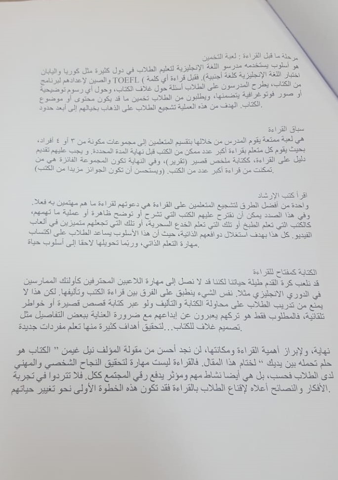 بناء على توجيهات سعادة عميد الكلية الدكتور/ ماجد شريدة بضرورة تشجيع الطالبات على القراءة أُقيم تحت إشراف وحدة العمل الطلابي بكلية التربية بوادي الدواسر أولى فعاليات ملتقى القراءة بحضور مجموعة من الطالبات قدمتها الدكتورة / إيمان محي منسقه المجالس الطلابية بالكلية وقد بُدأ اللقاء بمقدمة عن أهمية القراءة وفوائدها وخطوات ترغيب الطالبات بها . ثم بدأت مناقشه كتاب (حول العالم في٢٠٠يوم) الحاصل على جائزة الدولة للكاتب / أنيس منصور، من قِبل الطالبة نور الصافي بقسم رياض الأطفال حيث دار النقاش بينها وبين الطالبات عن محتوى الكتاب ومدى استفادتها منه وعلى ضوء ذلك تم الاتفاق على اللقاء الثاني في الأسبوع القادم بإذن الله حتى يتم تحليل كتاب آخرمع طالبة آخرى. كما تم الاتفاق على عمل عضوية للطالبات الراغبات بالإشتراك في نادى القراءة الذي سيعقد بشكل دوري خلال الفصل الدراسي .