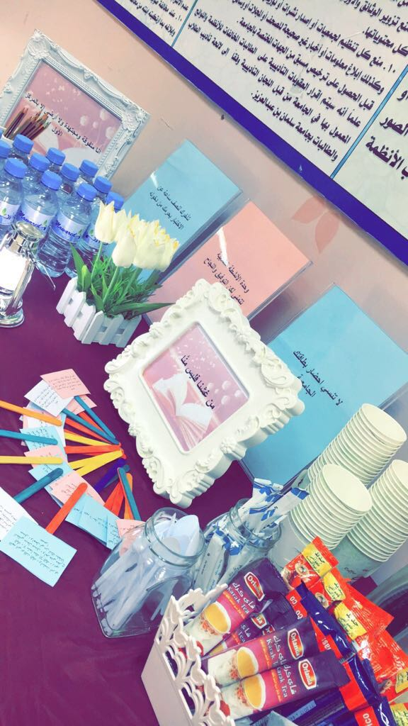 وقد اشتملت الفعالية على عرض التعليمات الخاصة بالاختبارات مرفقة مع كلمة للدكتورة أمل الشمراني وكيلة العمادة ، وعرض بعض العبارات التحفيزية وتوزيع بعض الأدعية الدينية لتخفيف قلق ما قبل الاختبار ، وأيضا توفير بعض المستلزمات الخاصة بالطالبات .