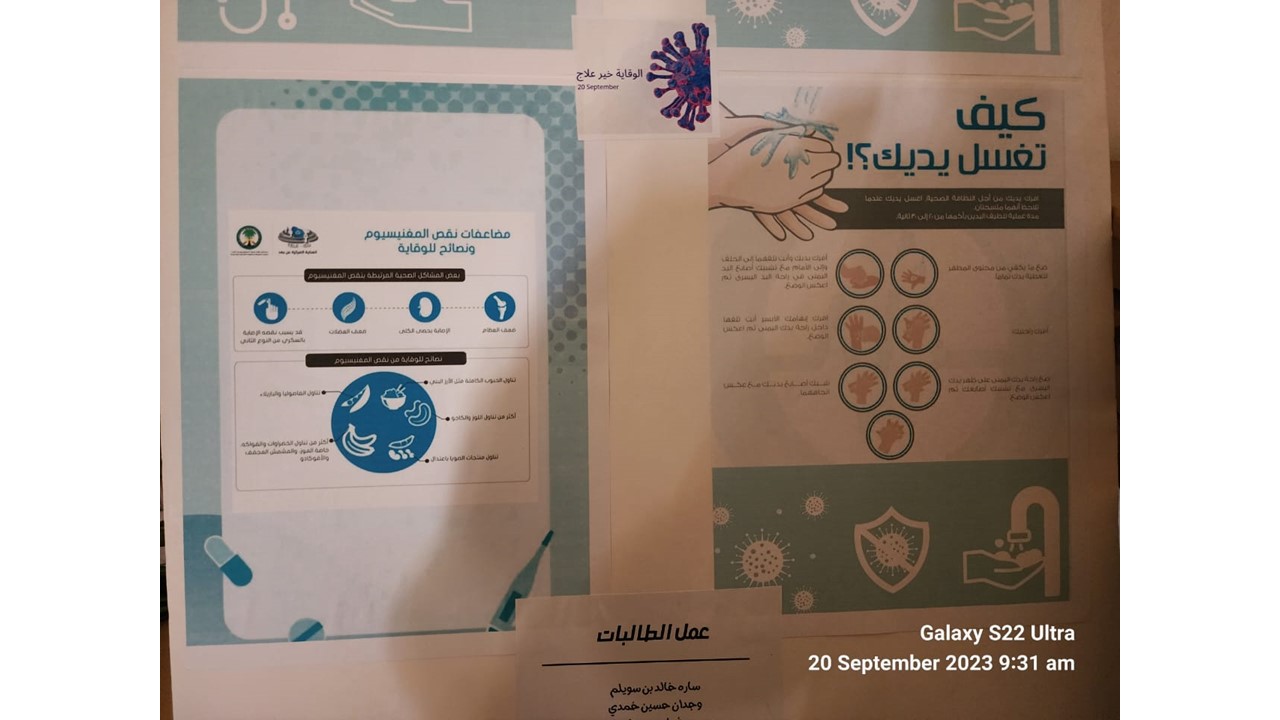 نظمت وحدة العمل التطوعي في برنامج السنة التحضيرية -قسم الطالبات- فعالية تحت عنوان: (الوقاية خير من العلاج)، وذلك يوم الأثنين 10-3-1445هـ،