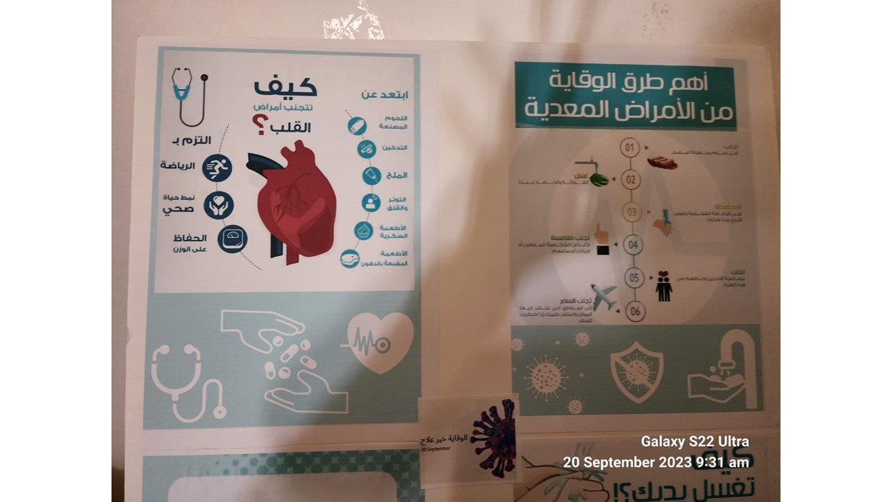 واستهلت الفعالية بتعريف عن الصحة وأهميتها ، كما تم التطرق لتوضيح العادات الغذائية واليومية التي تأثر بالسلب على صحة الانسان، واستعراض لنظم غذائية فعالة لتعزز وتحافظ على الصحة.