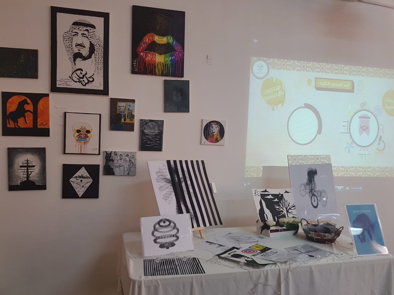 بدأت الفعالية بعرض لمواهب وهوايات الطالبات، حيث قامت الطالبتان روان السلجه وريما المالكي وهما إحدى الموهوبات بإلقاء مقدمة عن ماهية المواهب والهوايات اللاتي قمن بعرضها والتي احتوت على عدة مجالات مثل ( فن الرسم ،والتصوير الفوتوغرافي، والكتابة، والإلقاء والخطابة، وصناعة الأفلام القصيرة، والأشغال اليدوية، وبعض التجارب العلمية المسلية) وتخلل اللقاء عرض ما أنتجته أياديهن من رسومات وتصوير وأشغال يدوية، واختتم اللقاء بعرض فيديو قصير من إخراج الطالبة فاطمة سعد تحت عنوان مرض التصلب اللويحي ، فيما لاقت الفعالية استحسان الحضور والثناء عليها.