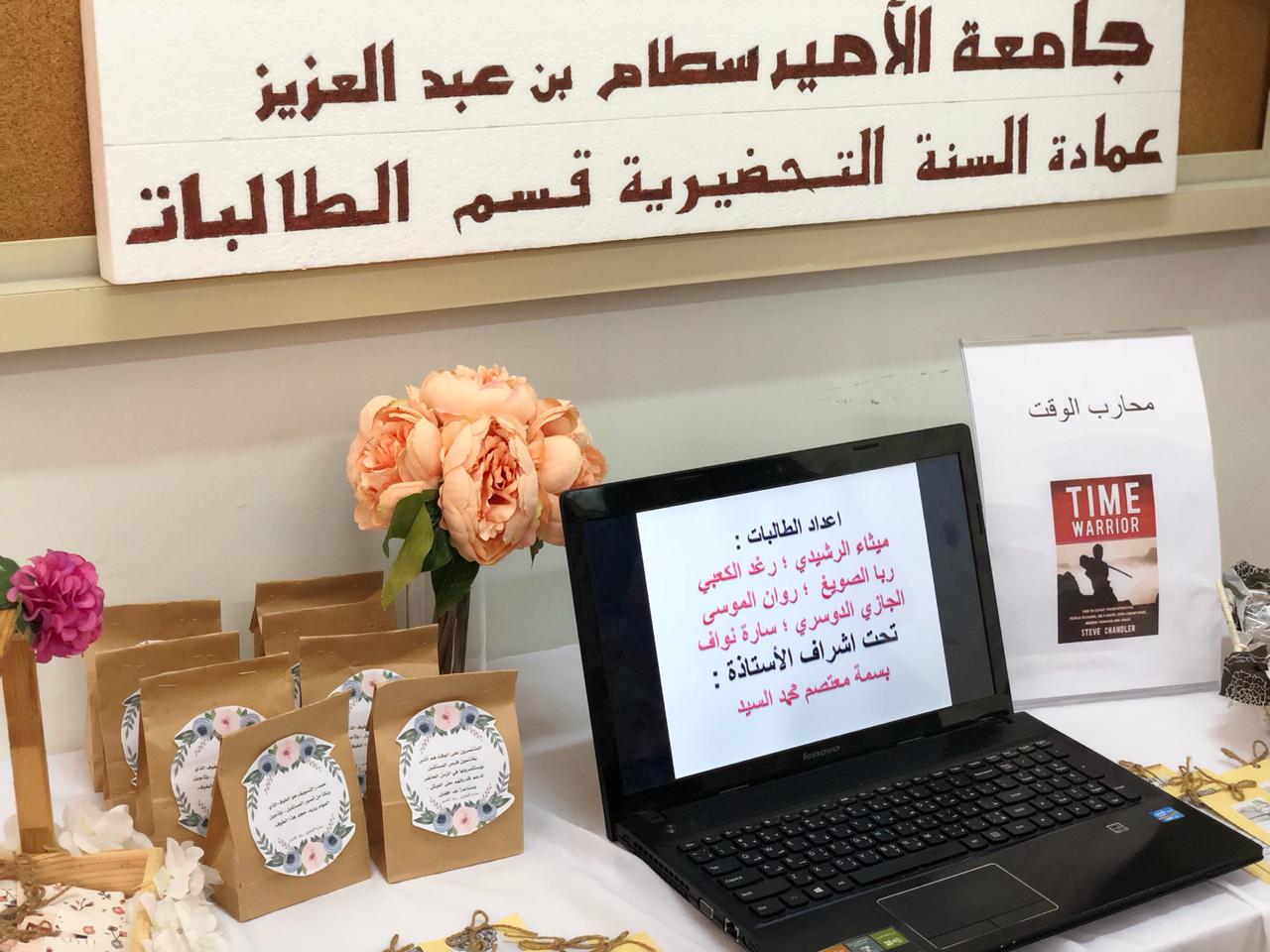 نظمت وحدة الموهوبات بعمادة السنة التحضيرية – شطر الطالبات يوم الأربعاء الموافق1440/3/6هـ ندوتين بعنوان "محاربة الوقت"و"كتاب من شواطئ الحياة"، بإشراف الأستاذة/ بسمة معتصم.حيث تضمنت ندوة محاربة الوقت عرض توضيحي من إعداد الطالبات يبين أهمية الوقت وكيفية استغلال الوقت بأمور مفيدة حيث يمتلك الوقت قيمة كبيرة في حياة الإنسان، و يحتاج إليه في جميع مجالات حياته .أما ندوة الأخرى تضمنت عرض من إعداد الكاتبة صيته الدوسري التي تحدثت عن خطوات تأليف كتابها، وما يتضمنه الكتاب من مواضيع منوعة في الحياة فهو يشمل خواطر وقصص قصيرة بعضها من الواقع. كما تحدثت الكاتبة عن المدة التي استغرقتها في إنشاء هذا الكتاب والعوائق والحواجز التي واجهتها بكل عزيمة وإصرار . حيث حضر الفعالية العديد من الطالبات ومنسوبات العمادة.