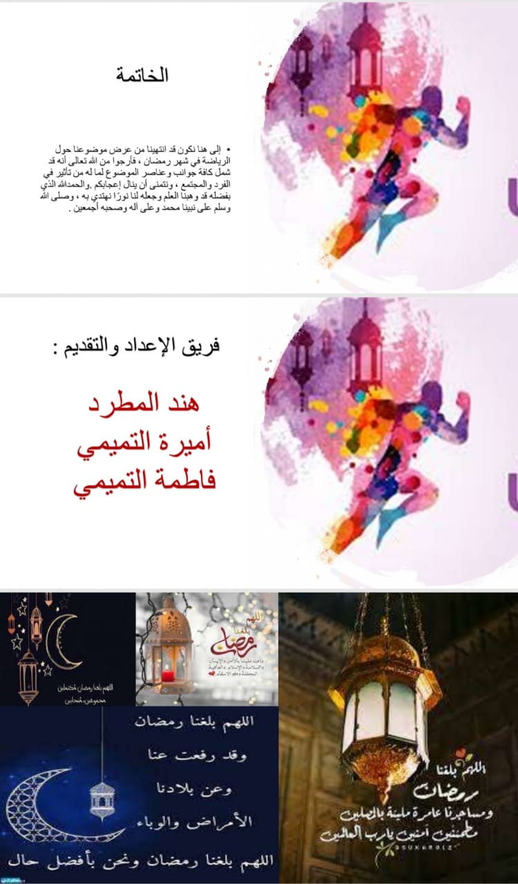أعده وقدمه فريق مميز من الطالبات هن : هند المطرد، أميرة التميمي، فاطمة التميمي، بإشراف من مشرفة النشاط الرياضي الأستاذة / نوف راشد العجيري.
