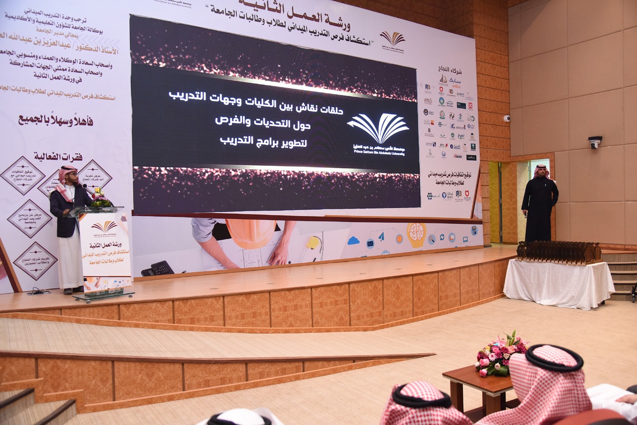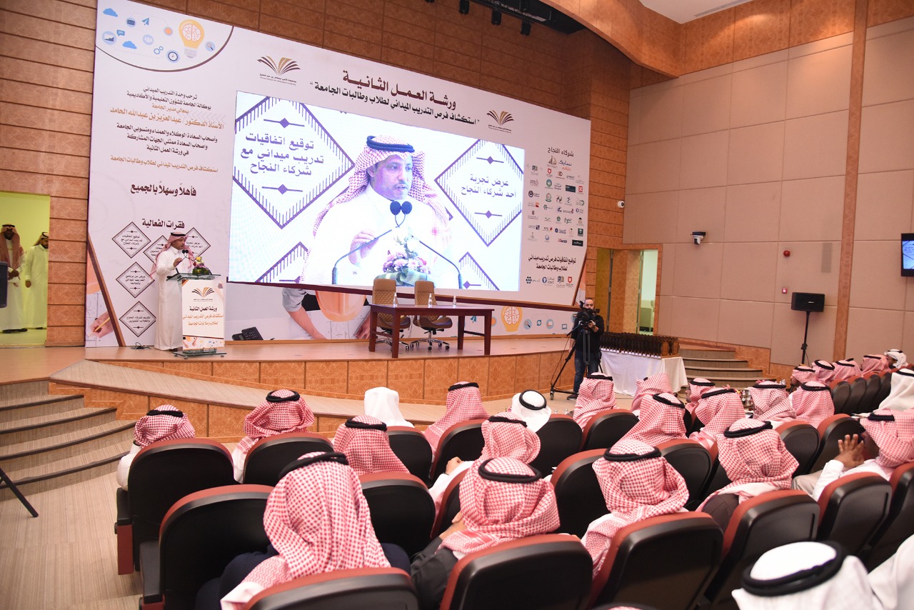 برعاية معالي مدير الجامعة الأستاذ الدكتور عبدالعزيز بن عبدالله الحامد نظمت وحدة التدريب الميداني بوكالة الجامعة للشؤون التعليمية والأكاديمية حيث افتتح سعادة الدكتورعبدالرحمن بن إبراهيم الخضيري وكيل الجامعة للشؤون التعليمية والأكاديمية المكلف و بحضور وكلاء الجامعة، وعمداء الكليات والعمادات المساندة، وممثلي القطاعات الحكومية والخاصة ورشة العمل الأولى بعنوان " استكشاف فرص التدريب الميداني لطلاب الجامعة " والتي صاحبها حفل تكريمي لجهات التدريب.