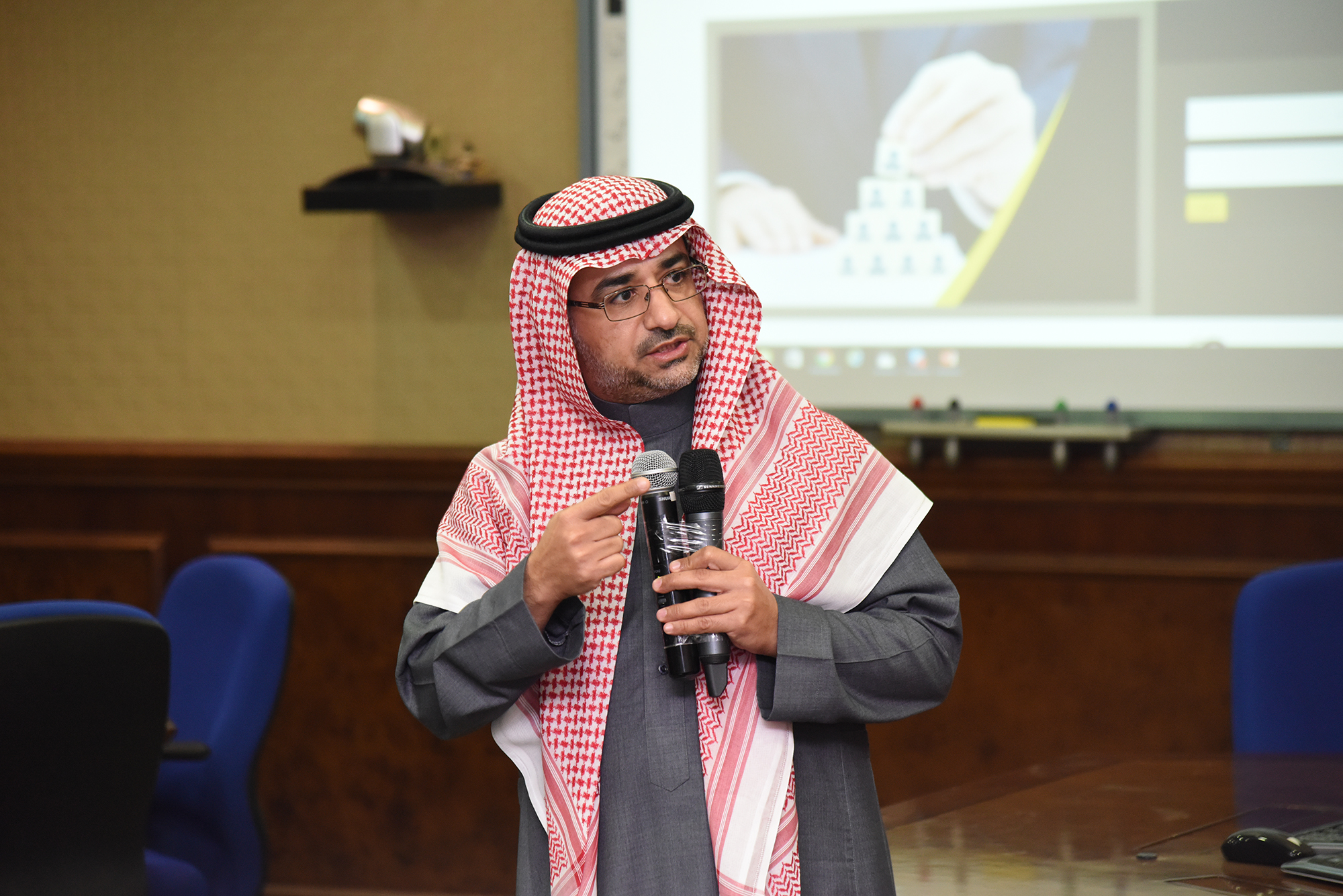 وفي الكلمة الافتتاحية للورشة لسعادة الدكتور عبد الرحمن بن إبراهيم الخضيري وكيل الجامعة للشؤون التعليمية والأكاديمية والتي رحب فيها بالحضور منوها سعادته بأهمية برامج التدريب الميداني لطلاب وطالبات الجامعة كأداة تساهم وبشكل كبير في تأهيليهم لمتطلبات سوق العمل بعد التخرج وكذلك ثمن سعادته دعم معالي مدير الجامعة لكل ما يخدم العلمية التعليمية والأكاديمية في الجامعة بما يسهم في تخريج كوادر وطنية قادرة على المساهمة وبشكل فاعل في تنمية الوطن بمختلف التخصصات.