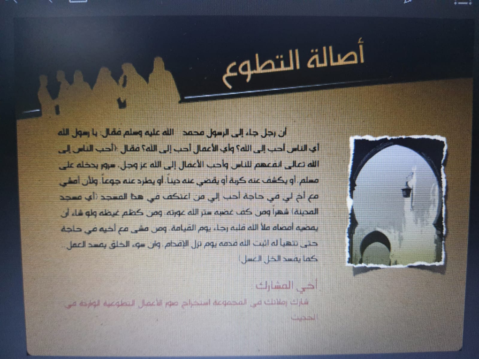 شاركت وحدة "التدريب والتطوير" بكلية التربية بدورتها التدريبية بعنوان " قيادة العمل التطوعى " عبر منصة البلاك بورد . قدمها الدكتور/ محمد حسن على الابيض استاذ مشارك الصحة النفسية بقسم التربية الخاصة بهدف نشر وتعزيز ثقافة العمل التطوعي وأثره الإيجابي على حياة الفرد ، حيث استهدفت الدورة اعضاء هيئة التدريس والهيئة الادارية وطلاب وطالبات الكلية والمهتمين بمجال العمل التطوعى . وكان من أهم محاور الدورة الحث على العمل التطوعى والمشاركة والتعاون فى بناء المجتمع بايثار ودون انتظار لاى مقابل معنوي او مادى أو شخصى سوى رضا الله وطاعته . وأيضا اشكال العمل التطوعي ومسؤوليات المتطوع والدوافع الإنسانية التي تدفع الفرد للمبادرة بهذا السلوك الإيجابي وأثره على المجتمع . كما عرض الدكتور عدة امثلة لبعض المواقف التطوعية المجتمعية لنماذج شخصيات إسلامية ساهمت في التأثير على المجتمع ايجابياً . وقد لاقت الدورة تفاعل كبير من الحضور من خلال طرح الأسئلة و بعض المواقف التطوعية من خلال استخدم اسلوب الانشطة القائمة على التفاعل والمشاركة الصوتية .