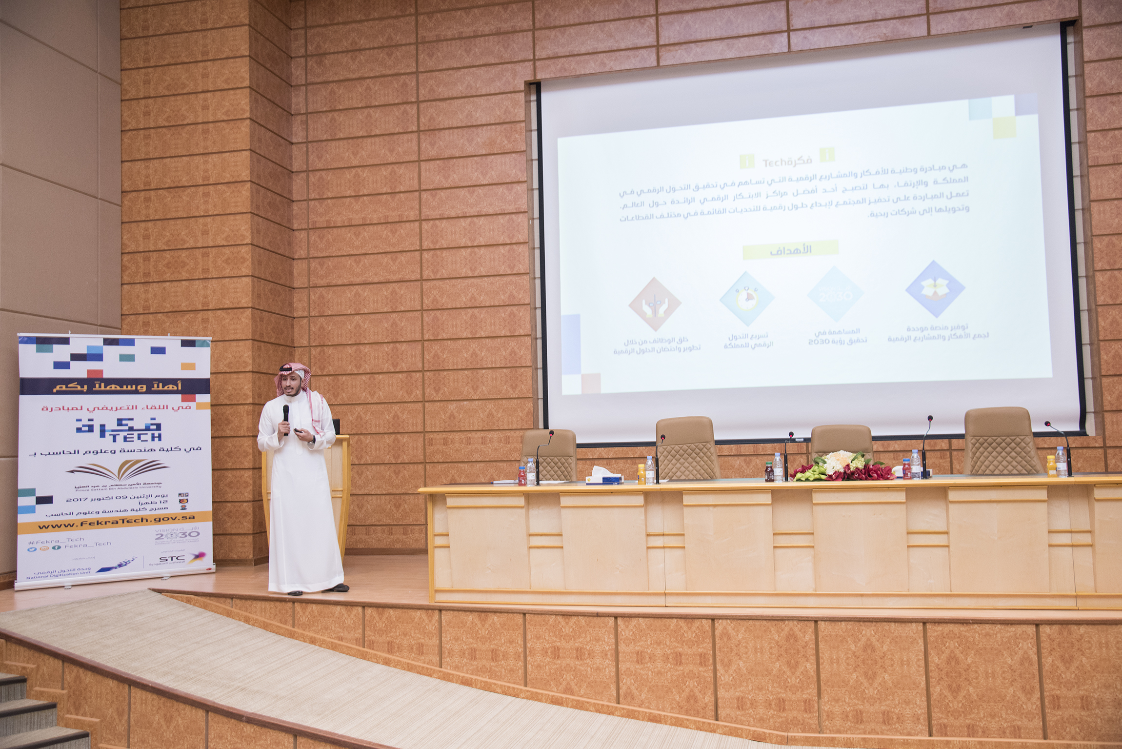 نظمت وحدة الأنشطة الطلابية بكلية هندسة وعلوم الحاسب بالتعاون مع وحدة التحول الرقمي في مسرح الكلية لقاءً تعريفياً بمبادرة "فكرة TECH" وهي إحدى المبادرات التي تتوافق مع رؤية المملكة 2030، بالتعاون مع الاتصالات السعودية STC كشريك حصري، وتستهدف الأفراد والشركات والمؤسسات، مما سيسهم في التحول الرقمي الوطني للمملكة.