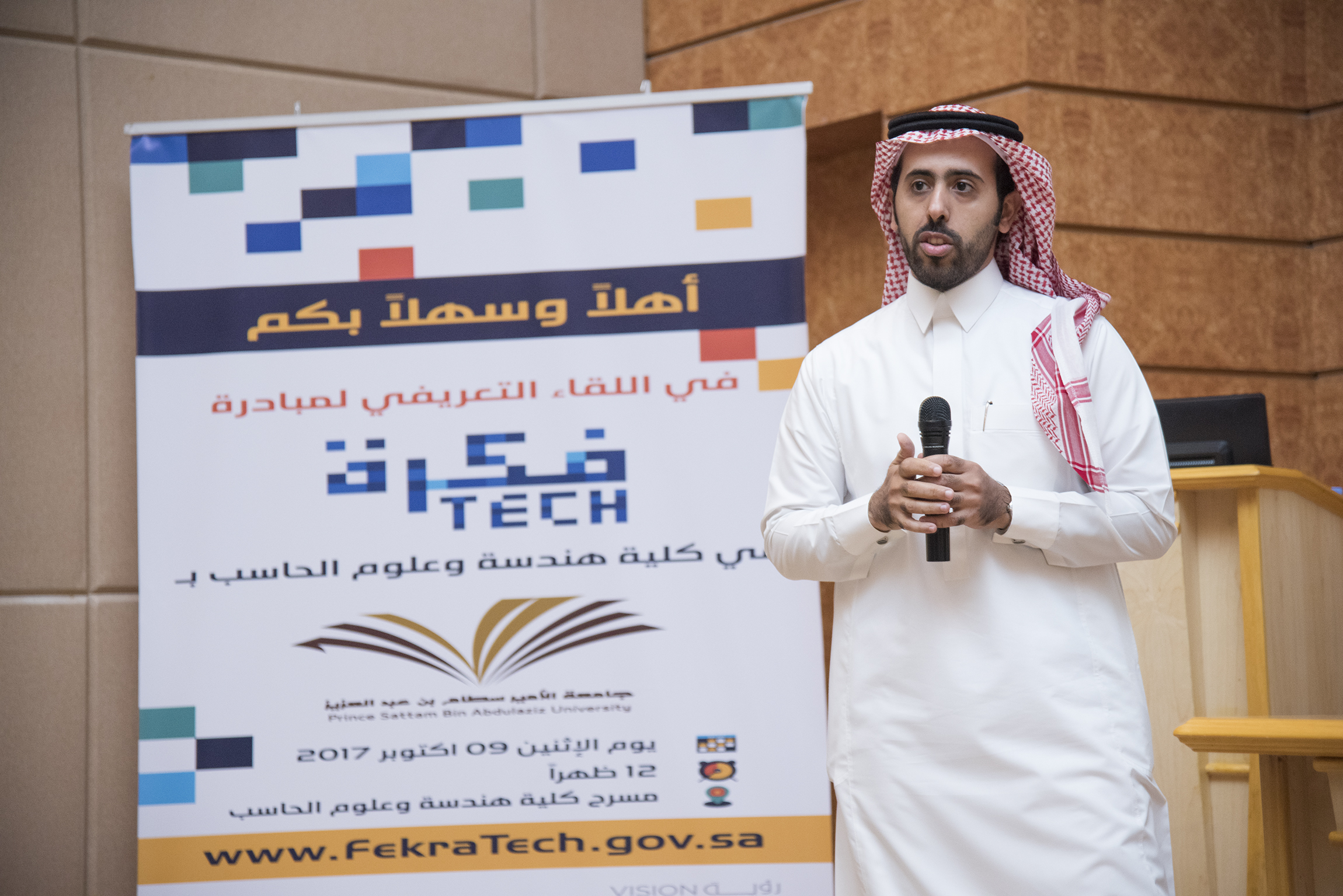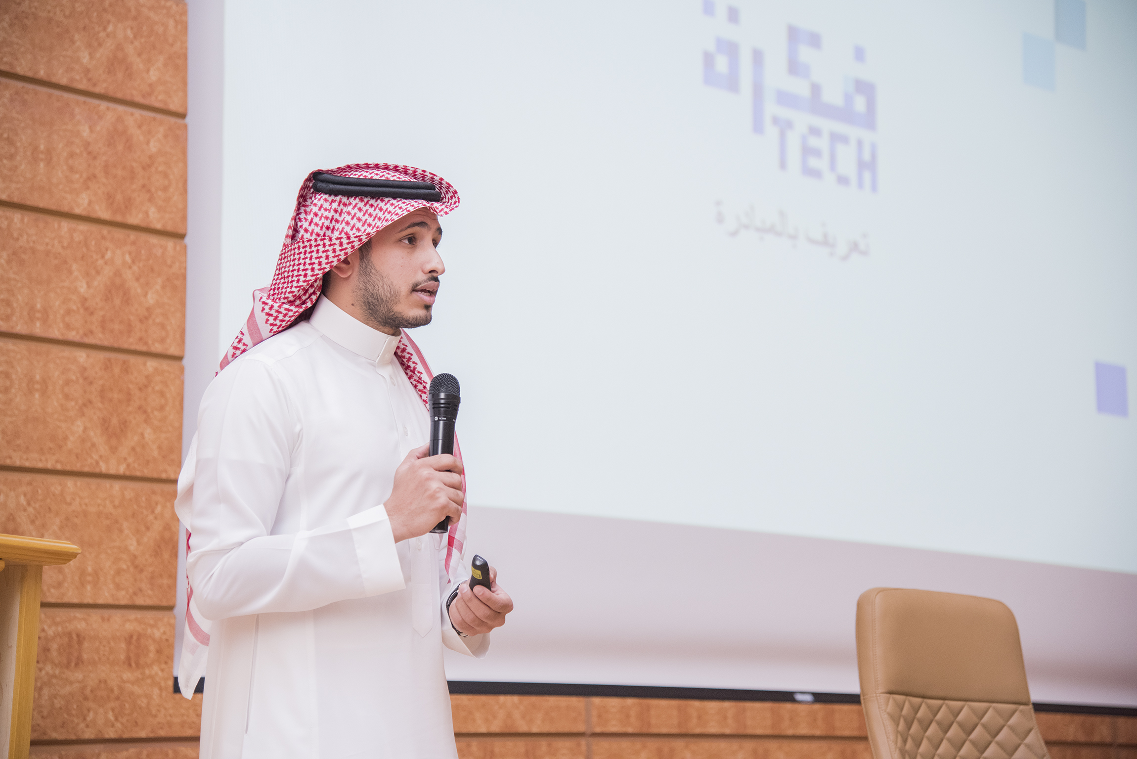 وبدأ مدير مشروع مبادرة "فكرة TECH" الأستاذ/ عناد العتيبي في حديثه التعريف بالمبادرة والتي تعتبر مبادرة وطنية للأفكار والمشاريع الرقمية التي تسهم في تحقيق التحول الرقمي في المملكة والارتقاء بها لتصبح أحد أفضل مراكز الابتكار الرقمي الرائدة حول العالم وتعمل على تحفيز المجتمع لإبداع حلول رقمية للتحديات القائمة في مختلف القطاعات وتحويلها إلى شركات ربحية.