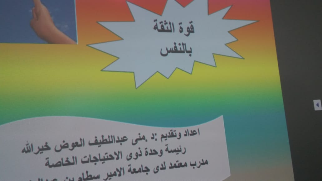 نظمت وحدة التخطيط والتطوير بكلية التربية بالدلم بالتعاون مع وحدة ذوي الاحتياجات الخاصة ورشة عمل بعنوان "قوة الثقة بالنفس" اليوم الأربعاء الخامس والعشرون من شهر جمادى الآخرة للعام 1441هـ في قاعة التدريب استهدفت فيها منسوبات الكلية، من إعداد وتقديم الدكتورة/ منى عبد اللطيف – عضو هيئة التدريس بقسم علم النفس ورئيسة وحدة ذوي الاحتياجات الخاصة.