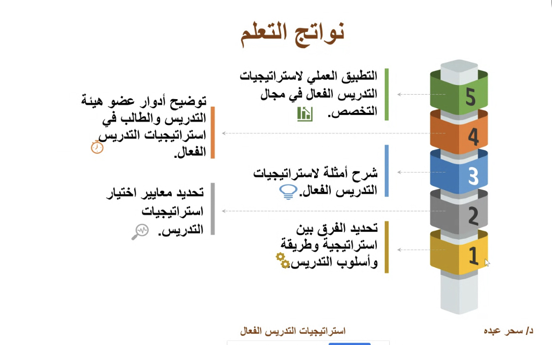 -التطبيق العملي لاستراتيجيات التدريس الفعال في مجال التخصص.
