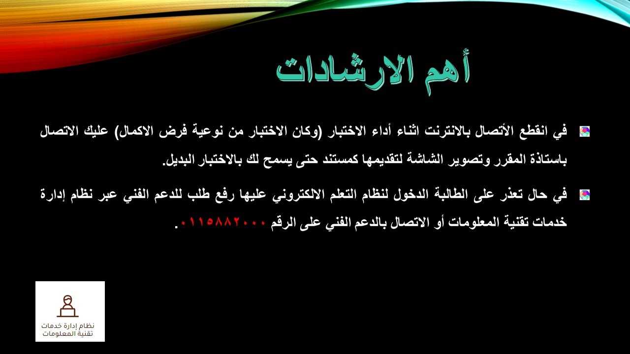 وتهدف الورشة إلى تعريف الطالبات على الاختبارات الالكترونية ومتطلباتها التقنية والفنية ثم تناولت إرشادات الاستعداد للاختبارات الالكترونية وكيفية مواجهة المشاكل أثناء الاختبارات، كما تم تعريف الطالبات على أنواع الأسئلة في الاختبارات الالكترونية وطريقة الإجابة على كل نوع.