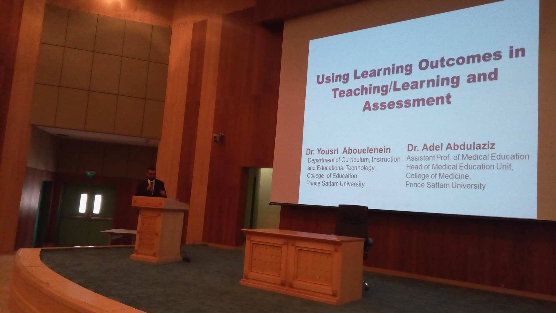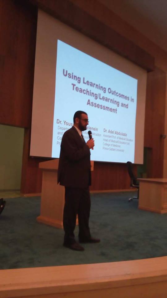 برعاية وكيل الجامعة للشؤون التعليمية والأكاديمية د.عبد الرحمن بن إبراهيم الخضيري أقامت وحدة التميز في التعلم والتعليم بوكالة الجامعة للشؤون التعليمية والأكاديمية يوم الثلاثاء 21/7/1438هـ الموافق 18/4/2017م، ورشة عمل رقم (14) ضمن البرنامج التدريبي الثالث بعنوان "صياغة واستخدام نواتج التعلم في التدريس والتعلم والتقييم" لأعضاء هيئة التدريس ببعض الكليات الصحية (الطب - الصيدلة - العلوم الطبية التطبيقية بواداي الدواسر)، قدم الورشة د.عادل عبد العزيز.