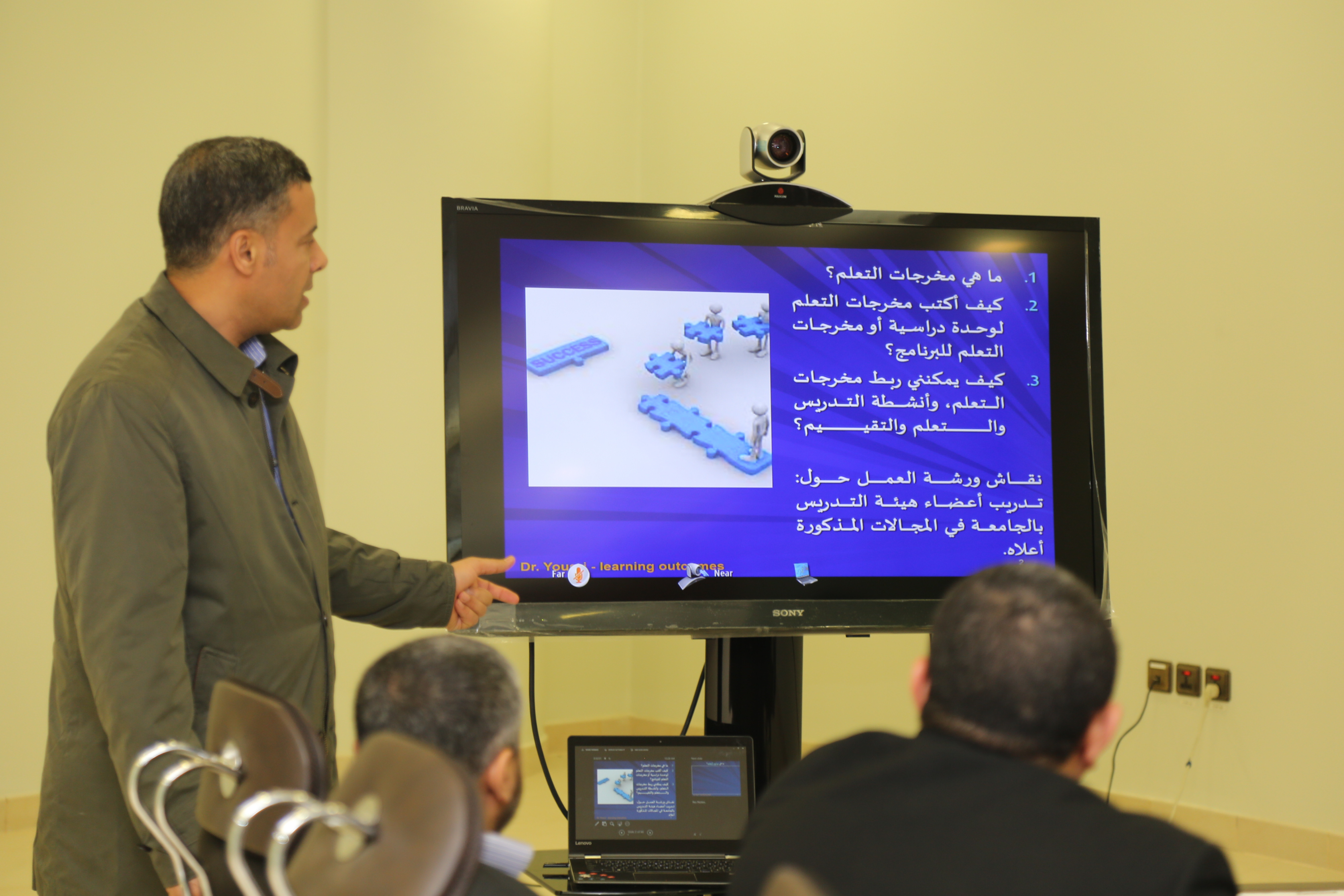 وقد تناول د. يسري أبو العينين، صياغة نواتج التعلم وفق مجالات التعلم المحددة بالهيئة الوطنية للتقويم والاعتماد الأكاديمي وعلاقتها بتصنيف بلوم للأهداف ووفق نماذج مخرجات التعلم بالمركز الوطني للقياس والتقويم وكيفية ربط نواتج التعلم باستراتيجيات التدريس وطرق تقييم الطلاب.
