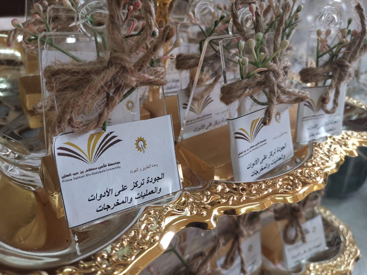 سعياً من عمادة السنة التحضيرية - قسم الطالبات- في تطوير سير العمل على مستوى عالٍ من الجودة، ووفق معايير منظمة ودقيقة ونشر ثقافة الجودة بين الطالبات، فقد نظمت وحدة التطوير والجودة فعالية "سِباقُنا نحو التميز" تحت إشراف وإعداد أ/وفاء الجغثمي، الأربعاء الموافق ١٤٤١/٠٤/١٤هـ، والذي جاء متزامناً مع اليوم العالمي للجودة. ابتدأت هذه الفعالية بعد الترحيب بالحضور من قبل الأستاذة وفاء الجغثمي بورشتين عن الجودة ومفهومها، والاعتماد الأكاديمي وأهميته، ودور الطالب في الجودة. أوضحت الأستاذة وفاء في الورشة الأولى " الجودة والاعتماد الأكاديمي" التي ضمت عدد من المحاور كان من أهمها، أهداف تفعيل يوم الجودة العالمي، مفهوم الجودة، لماذا ننشد الجودة؟ ، مفاتيح الجودة، أهمية وحدة الجودة في العمادة، رؤيتها، رسالتها وقيمها ، بالإضافة إلى نبذة عن الاعتماد الأكاديمي كما قامت سفيرات الجودة في الورشة الثانية بتوضيح دور الطالبة في الوصول إلى الجودة، مفاهيم، حقوق وواجبات. عقب ذلك افتتحت سعادة الوكيلة الدكتورة أمل بنت صالح الشمراني المعرض المصاحب لهذه الفعالية والذي ضم العديد من البروشورات والتوزيعات والمجسمات التي أوضحت ماهية الجودة بشكل عام والاحتفال بمناسبة حصول جامعة الأمير سطام على الاعتماد المؤسسي الكامل لمدة سبع سنوات مشيدة بالجهود التي بذلتها الأستاذة وفاء وطالباتها سفيرات الجودة في إنجاح هذه الفعالية والتي لاقت استحسان الحضور.