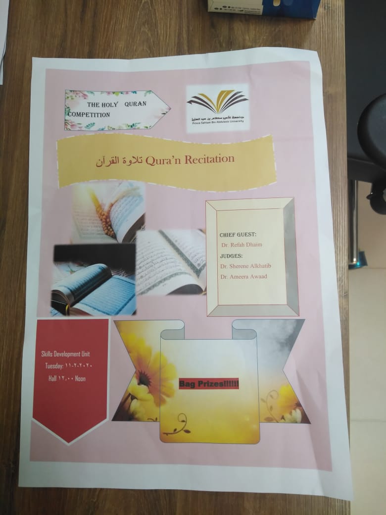 انطلاقا من حرص الجامعة على التطوير والتميزعُقدت يوم الثلاثاء الموافق 24 / 6 /1441هـ فعالية بعنوان "مهارات تلاوة القرآن الكريم " تحت أشراف د. أفشا جمال المسؤولة عن وحدة التطوير والتميز في الكلية