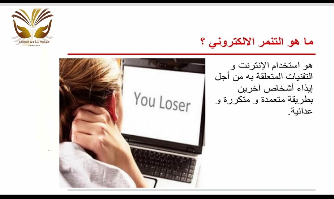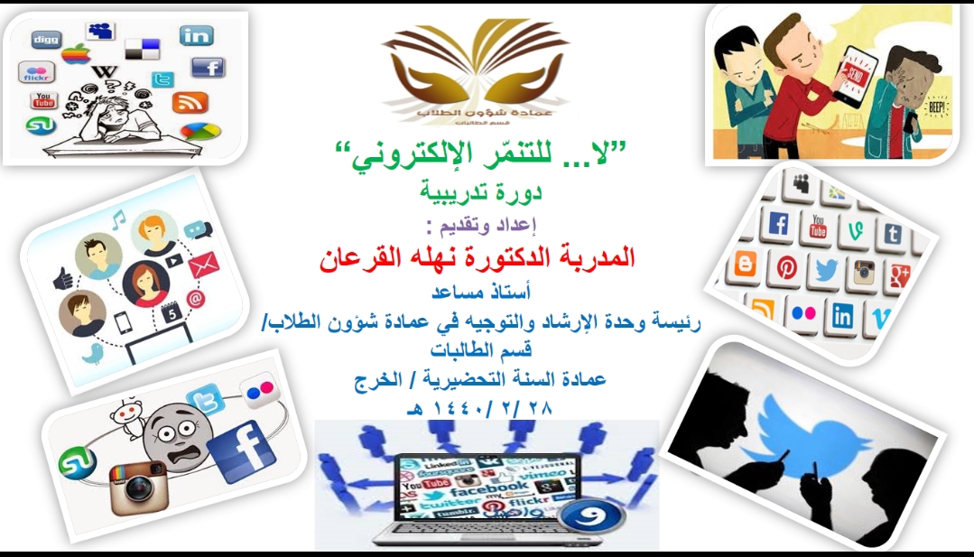 بحضور وكيلة عمادة السنة التحضيرية الدكتورة أمل الشمراني قدمت رئيسة وحدة التوجيه والإرشاد في عمادة شؤون الطلاب الدكتورة نهلة القرعان دورة تدريببة بعنوان "لا ... للتنمّر الإلكتروني"