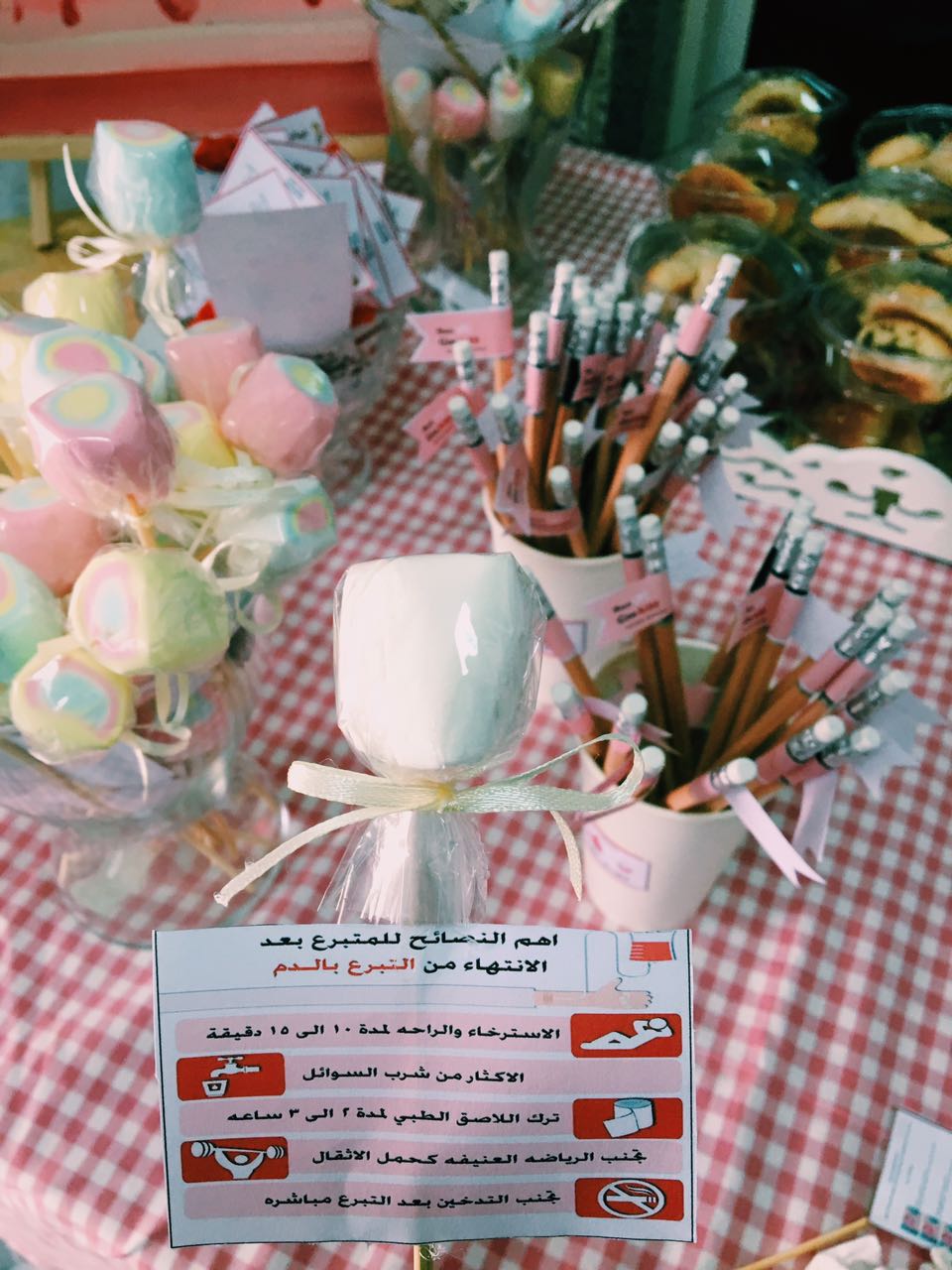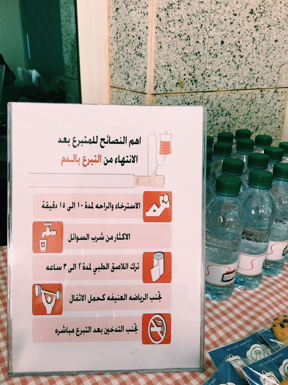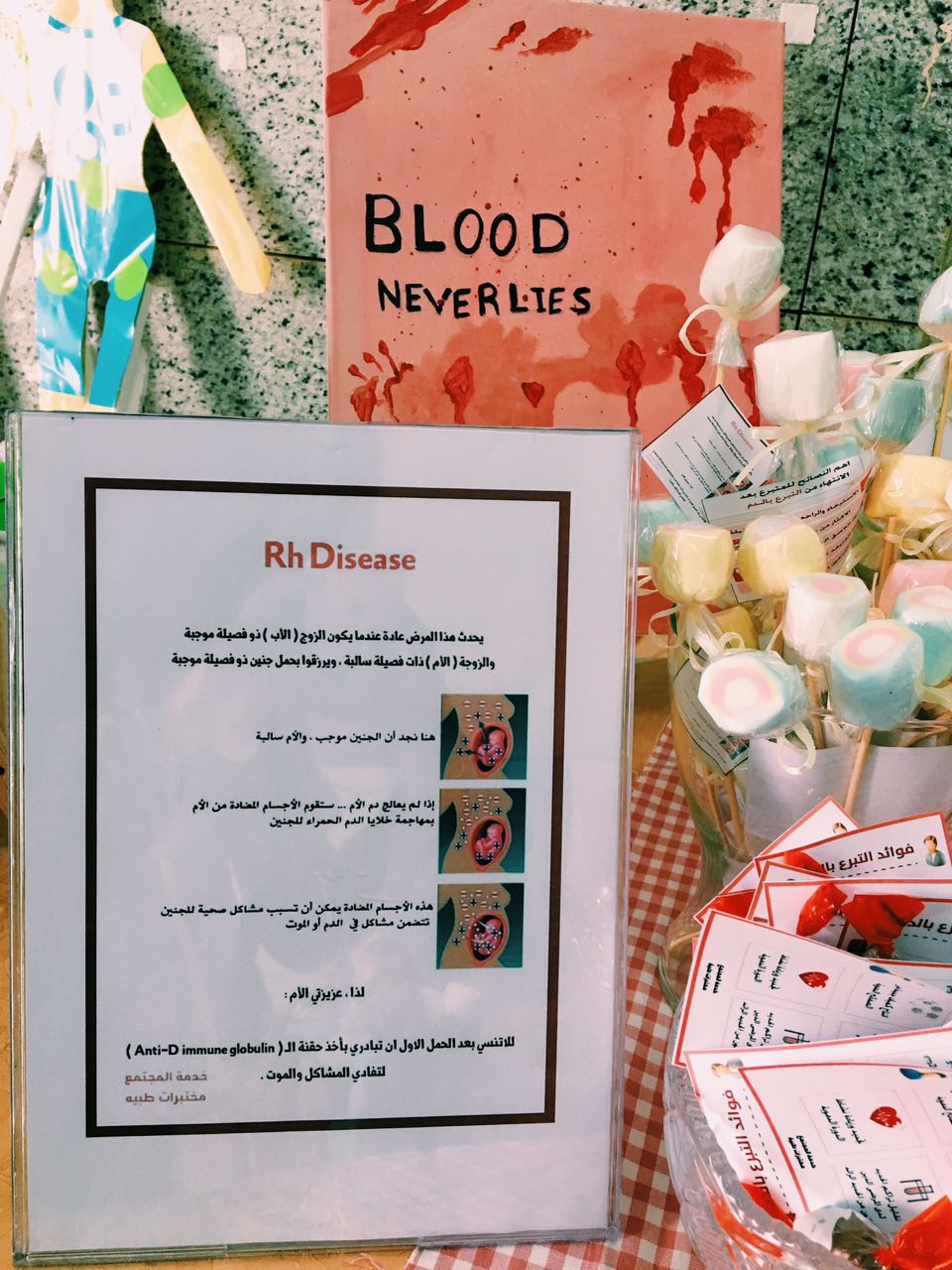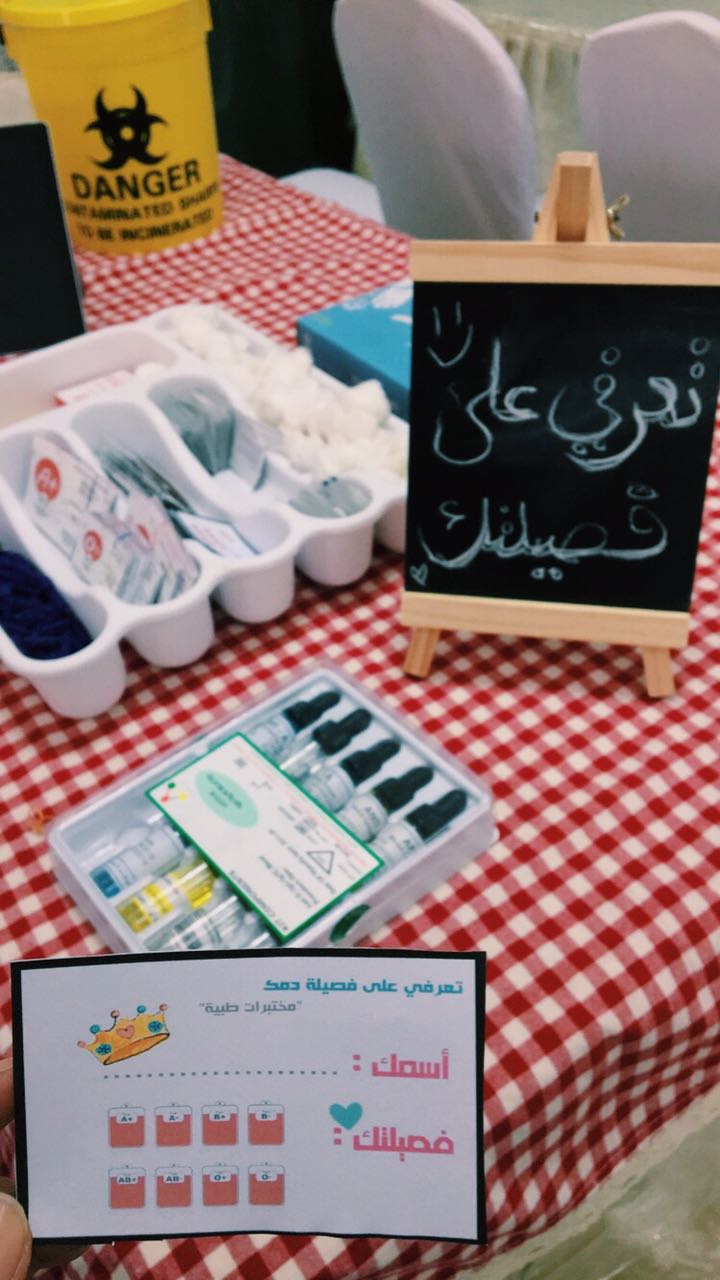 ( نصائح للمتبرع بعد التبرع بالدم وماهو عامل ريسيس وعلاقته بالجنين وركن خاص بعمل تحليل فصيلة الدم يحتوي على الكيماويات وجميع الأدوات اللازمة لذلك مراعيين نظم السلامة والأمان لمن تقوم بعمل التحليل .