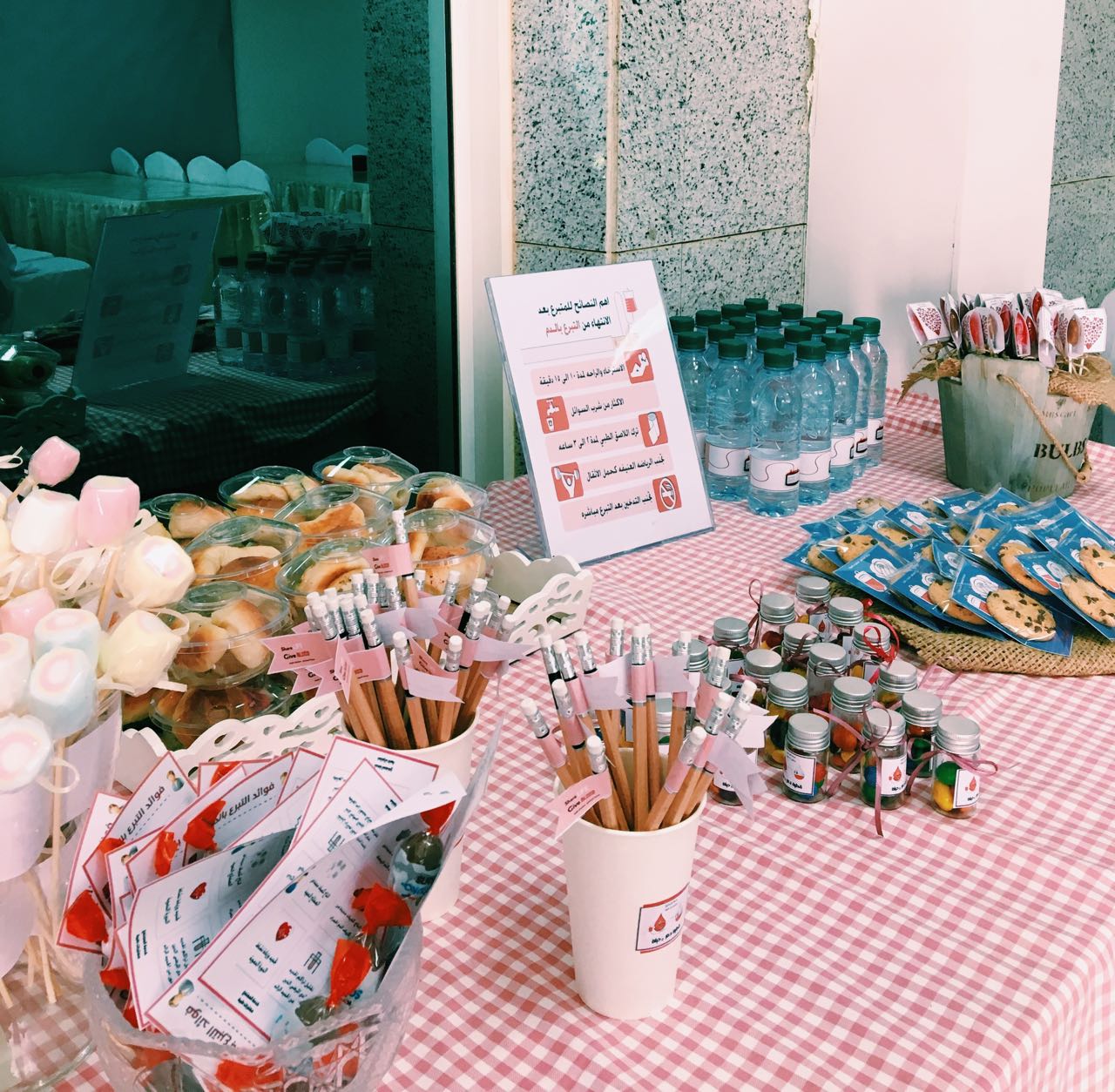 وهدفت الفعالية إلى نشر الثقافة الصحية بالمجتمع وذلك من خلال توعية طالبات المرحلة الجامعية بأهمية التبرع بالدم للمتبرع وللمريض وماهية التحاليل الواجب عملها للدم للتأكد أنه خالي من الأمراض المعدية .