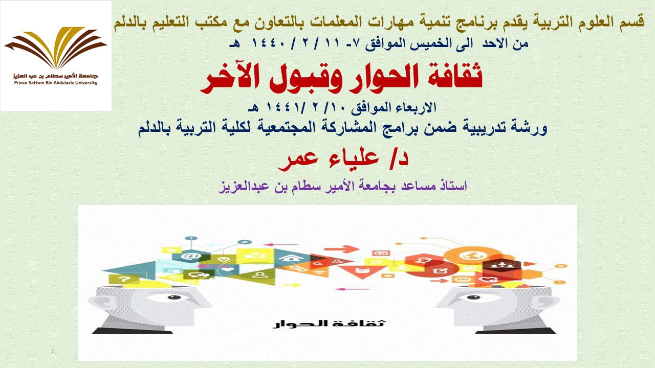اليوم الرابع: ثقافة الحوار وقبول الاخر وقدمتها د. علياء عمر