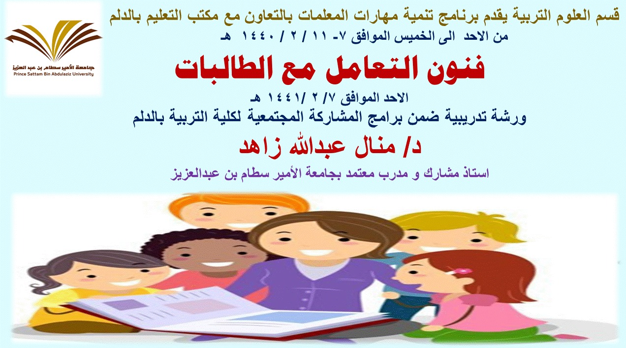اليوم الاول: فنون التعامل مع الطالبات وقدمتها د. منال زاهد