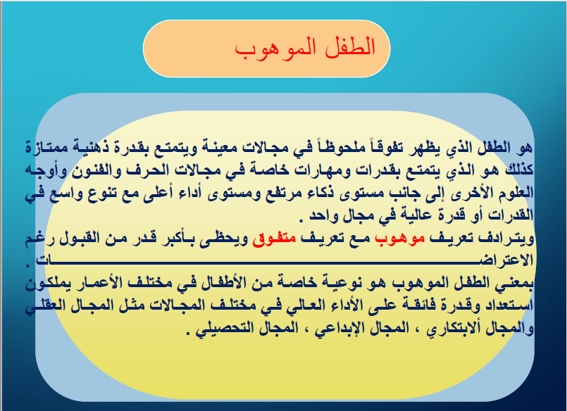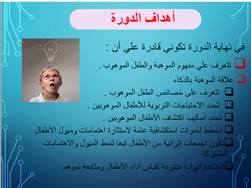 تحت اشراف سعادة عميد الكلية الدكتور/ ياسر بن مبارك الدوسري، و في إطار برامج التنمية المستدامة و التي تستهدف منسوبي إدارة التعليم بمحافظة وادي الدواسر ، استكملت وحدة خدمة المجتمع بكلية التربية شطر الطالبات رابع فعالياتها لمنسوبات إدارة التعليم بمحافظة وادي الدواسر بعنوان " آليات الكشف عن الموهوبين " يوم الاثنين 10 / 9/ 1443هـ الموافق 11 / 4 / 2022م في تمام الساعة العاشرة مساءاً عبر نظام البلاك بورد ، حيث استهدفت الورشة منسوبات إدارة التعليم بمحافظة وادي الدواسر ، وقام بتقديمها الدكتورة / ثناء شعبان محمد ،أستاذ علم النفس الطفل المساعد بقسم رياض الأطفال . وتناولت الورشة المحاور التالية: مفهوم الموهبة و الطفل الموهوب ، و علاقة الموهبة بالذكاء ،أساليب اكتشاف الموهوبين ،أدوات قياس الموهبة ، تنمية ميول واهتمامات الأطفال الموهوبين . حضر الدورة عدد من معلمات المرحلة الابتدائية و معلمات رياض الأطفال ، ومن خلال تفاعلهم الفعال مع الورشة أبدى جميع الحضور شكرهم لكلية التربية على جهودها في تلبية احتياجاتهم وتطوير قدراتهم بما يعود بالنفع على العملية التعليمية.