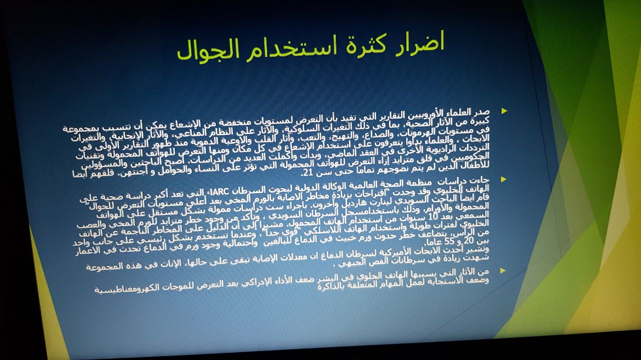 و قد قام بتنفيذها الأستاذة/ كوثر علي محجوب – وكيلة قسم اللغة الإنجليزية ومنسقة وحدة خدمة المجتمع بالقسم والاستاذة/ فاتن منصور– وكيلة قسم الكيمياء ومنسقة وحدة خدمة المجتمع بالقسم و ذلك بهدف توعية أولياء الأمور و الأطفال بخطورة الأجهزة الالكترونية الحديثة على الصحة العامة ، وتعريفهم بأنواع الإشعاعات و خطورتها على الصحة.