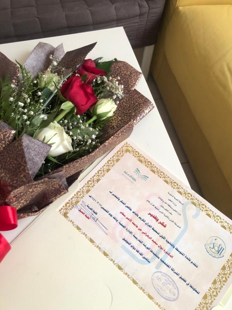 وفي ختام الدورة التدريبية قدمت إدارة المدرسة شكرها وتقديرها للدكتورة / نوال على حضورها ومبادرتها.