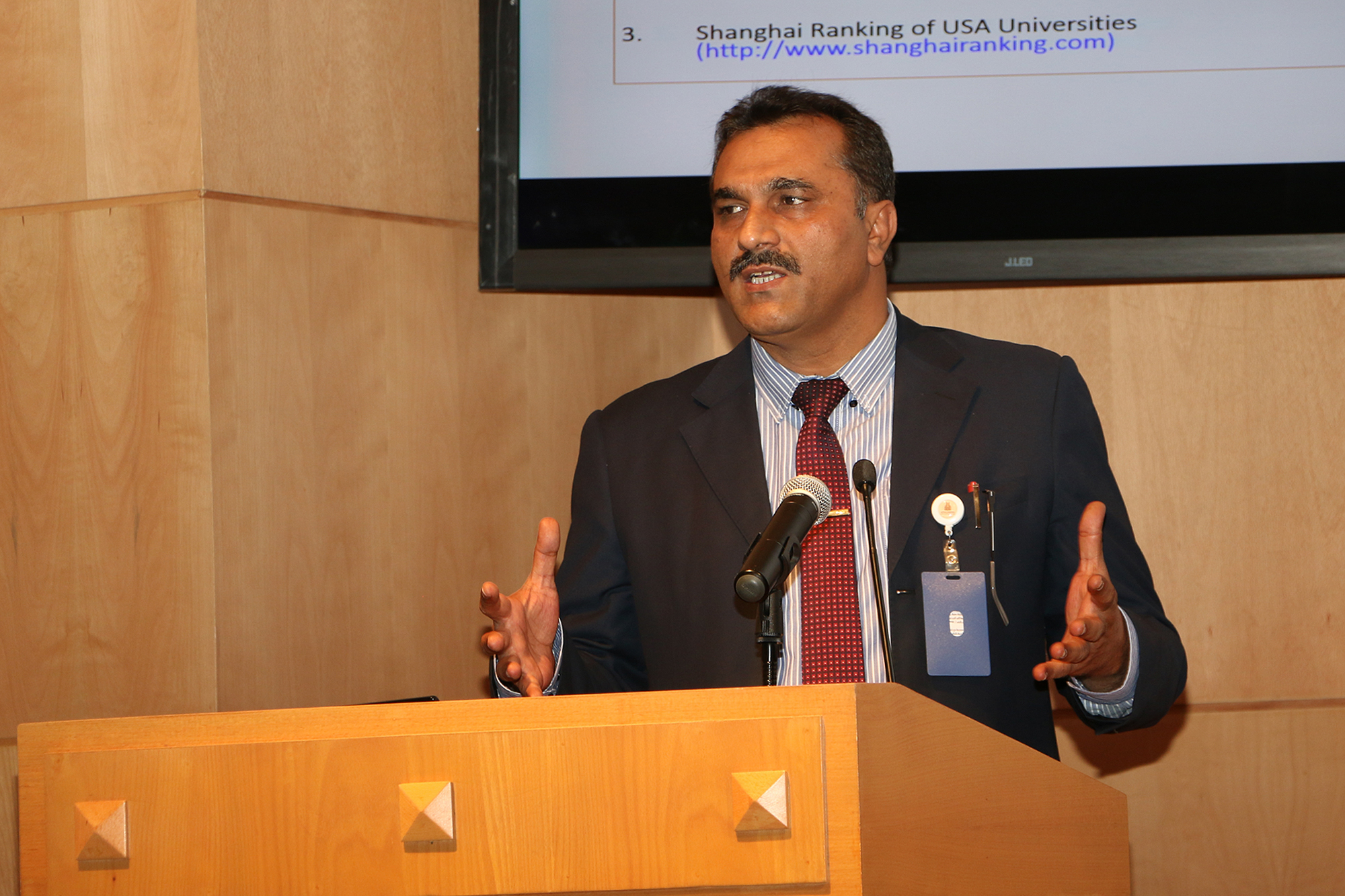 ثم تبع ذلك تقديم محاضرة بعنوان (كيفية البحث عن تصنيف الجامعات والبرامج الأكاديمية) قدمها الدكتور/ مظفر عباس استعرض خلالها كيفية البحث عن تصنيف الجامعات و كيفية البحث عن تصنيف البرامج وذلك وفق ضوابط الابتعاث المعتمدة من جامعة الأمير سطام بن عبدالعزيز.