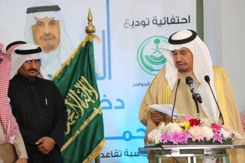 شَهِد بيت الطالب بخماسين وادي الدواسر، حفلاً توديع وتكريم محافظ الدواسر السابق "أحمد بن دخيل المنيفي"؛ عرفاناً بجهده ووفاءً بعطائه، بمناسبة تقاعده عن العمل الوظيفي، بعد مسيرة دامت 41 عاماً، خدم فيها دينه ومليكه ووطنه، بحضور وكيل المحافظة ومديري الأجهزة الأمنية والمدنية ورجال الإعلام.