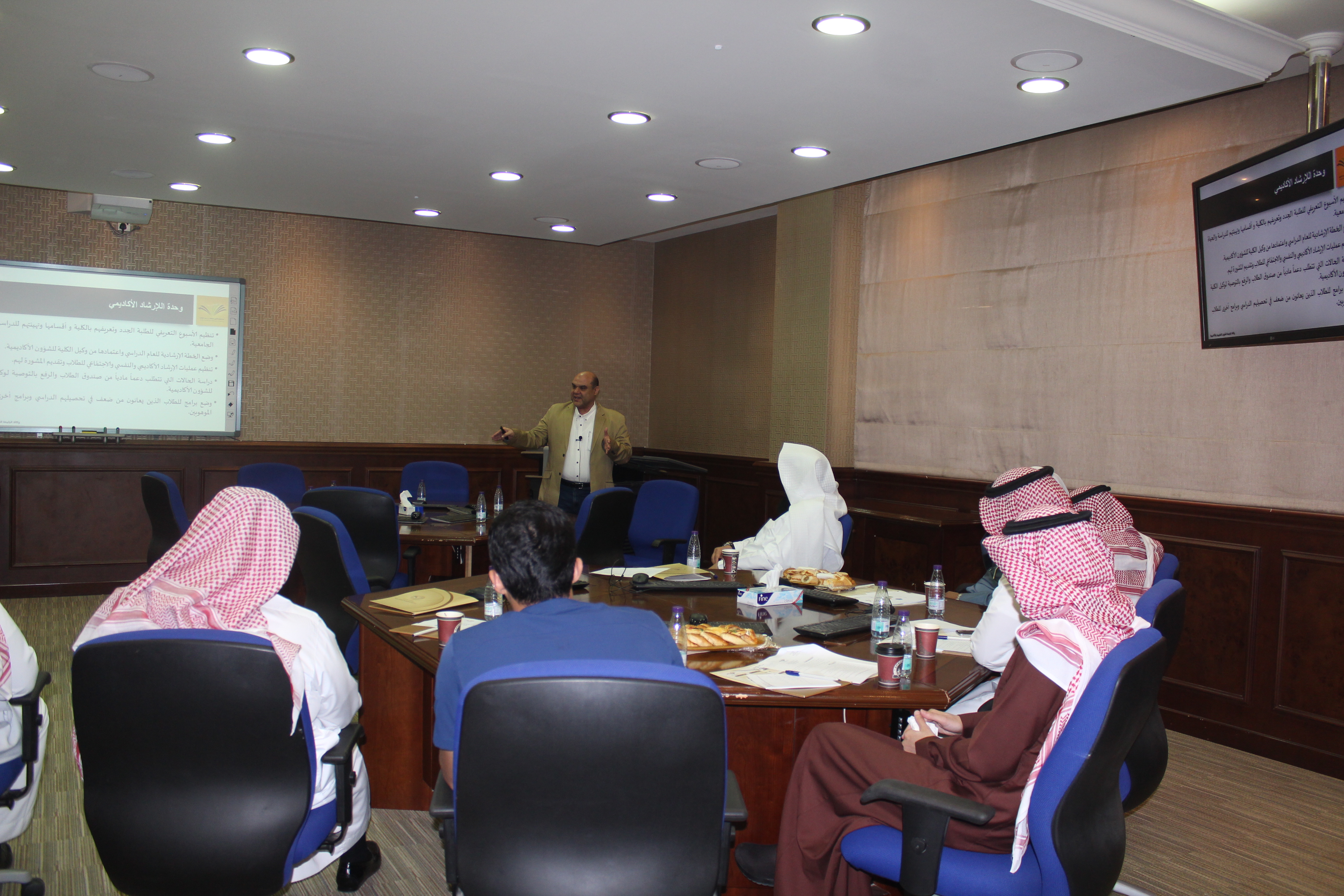 ثم استعرض سعادة عميد عمادة شؤون القبول والتسجيل الدكتور/ عبدالعزيز بن محمد الصقر أهم المشكلات التي تواجه وكالات الكليات للشؤون التعليمية والأكاديمية وعن أهمية التعاون القائم بين وكلاء ووكيلات الكليات للشؤون التعليمية والأكاديمية وعمادة القبول والتسجيل وسُبل دعم وتطوير هذه العلاقة في ظل الدعم المتواصل من معالي مدير الجامعة الأستاذ الدكتور عبدالعزيز بن عبدالله الحامد وسعادة وكيل الجامعة للشؤون التعليمية والأكاديمية المكلف الدكتور عبدالرحمن بن ابراهيم الخضيري