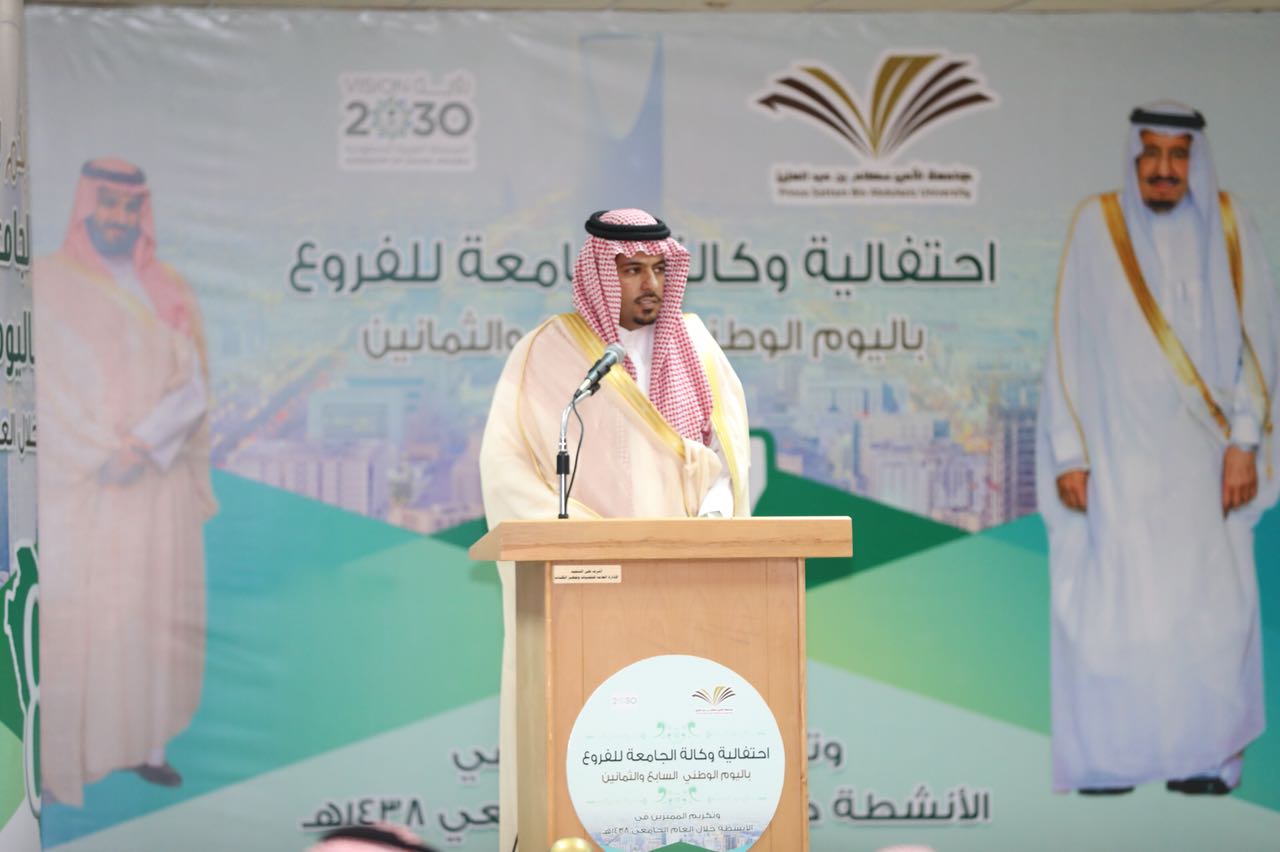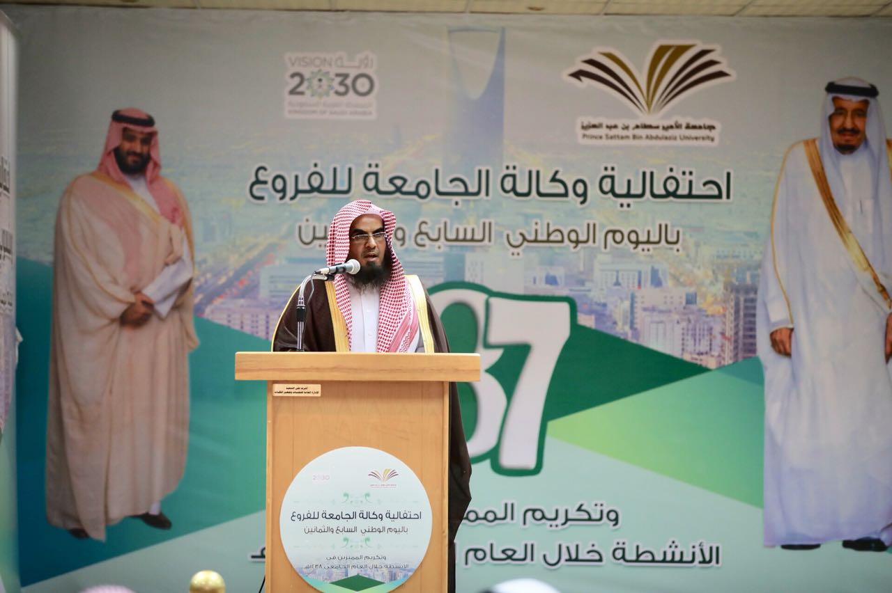 احتفلت وكالة جامعة الأمير سطام بن عبد العزيز للفروع بوادي الدواسر بالذكرى السابعة والثمانين لليوم الوطني المجيد ، بحضور محافظ وادي الدواسر الأستاذ / عبدالله بن سليمان المبارك .