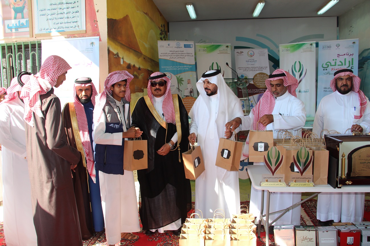 شاركت وكالة جامعة الأمير سطام بن عبدالعزيز بحضور محافظ وادي الدواسر الأستاذ عبد الله بن سليمان المبارك يوم امس الأربعاء الموافق 1440/3/27هـ احتفاء لجنة التنمية الإجتماعية الأهلية بالقويز باليوم العالمي للأشخاص ذوي الإعاقة ضمن برنامج ” ارادتي تصنع المعجزات ” الذي تنفذه اللجنة ، واقيم بمدرسة ابتدائية النويعمة، بحضور مدير تعليم وادي الدواسر الدكتور أحمد العُمري ورئيس اللجنة الأستاذ متعب بن فيحان بن قويد وعدد من رؤساء ومديري الجهات الحكومية والأهلية وأولياء أمور الطلاب والمعلمين ، وبمشاركة فصول التربية الخاصة بمدارس المحافظة.