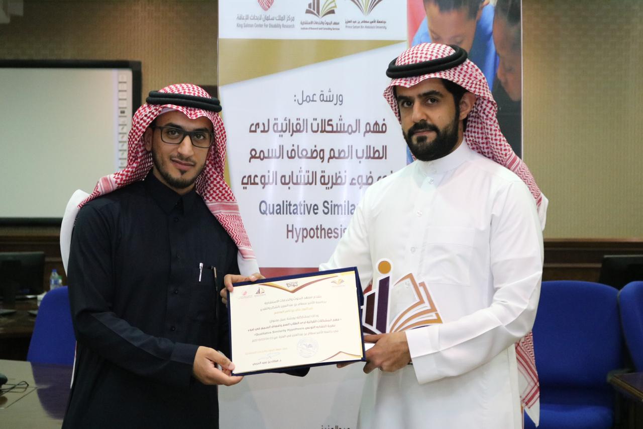 اختتم معهد البحوث والخدمات الاستشاريّة ورشة العمل (فهم المشكلات القرائيّة لدى الطلاب الصمّ وضعاف السمع في ضوء نظريّة التشابه النوعي Qualitative Similarity Hypothesis)) والتي قدمها الدكتور خالد بن ناصر العاصم أستاذ التربية الخاصّة المساعد بالجامعة يوم 3-4/3/2019م، بالتعاون مع مركز الملك سلمان لأبحاث الإعاقة.