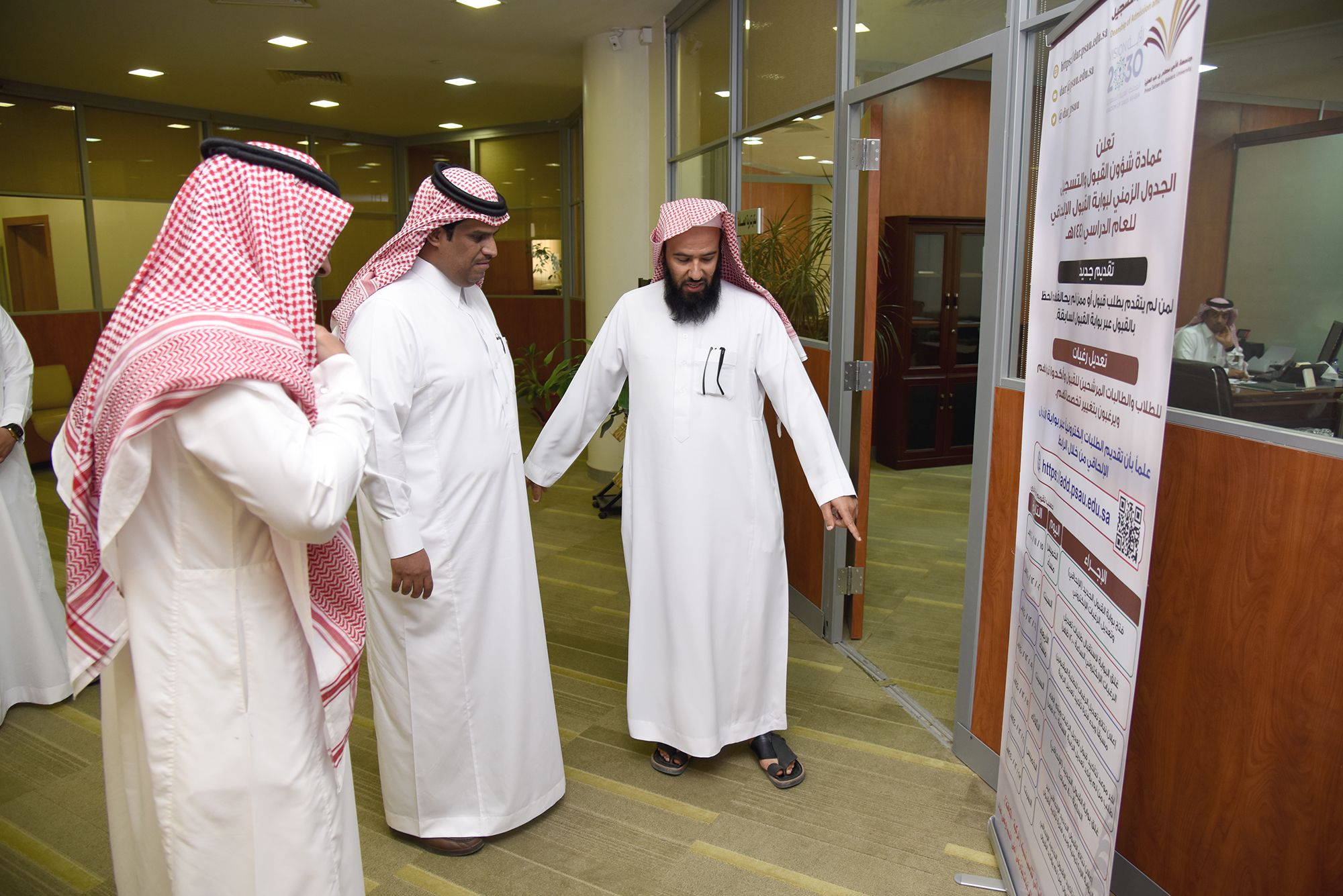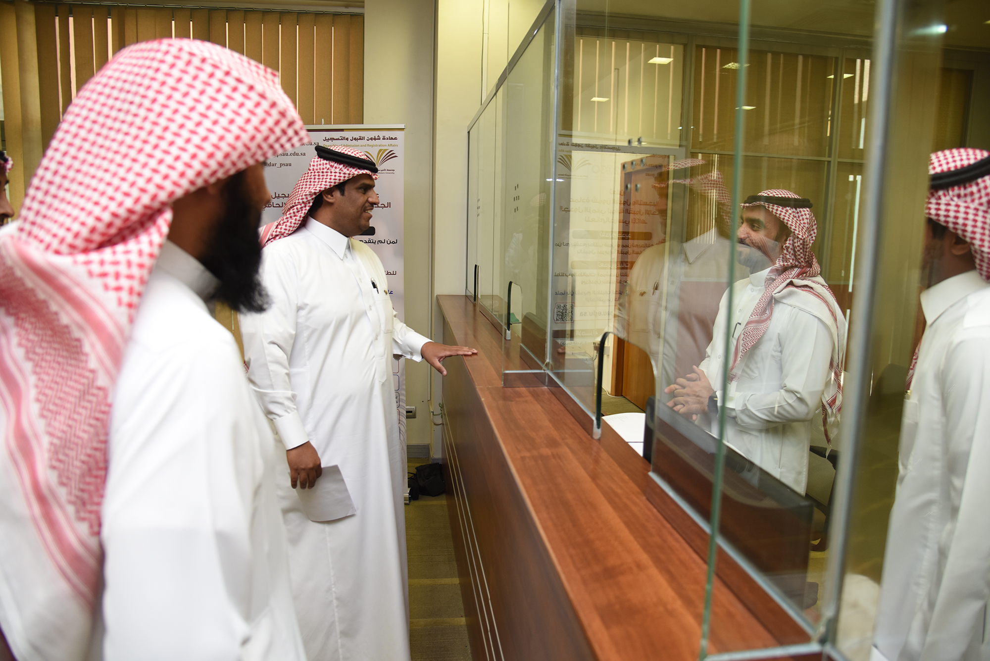 قام وكيل الجامعة للشؤون التعليمية والأكاديمية الدكتور مشاري بن عياد العصيمي صباح اليوم الثلاثاء 19/12/1440هـ بزيارة تفقدية لعمادة شؤون القبول والتسجيل ، وكان في استقباله عميد شؤون القبول والتسجيل الدكتور عبدالعزيز بن محمد الصقر و وكيل العمادة الدكتور هشام العبدالجبار، حيث اطلع سعادة وكيل الجامعة للشؤون التعليمية والأكاديمية على سير العمل في العمادة والترتيبات النهائية لفرز أسماء الطلاب والطالبات الذين تم قبولهم في الجامعة للعام الجامعي 1440/1441هـ .