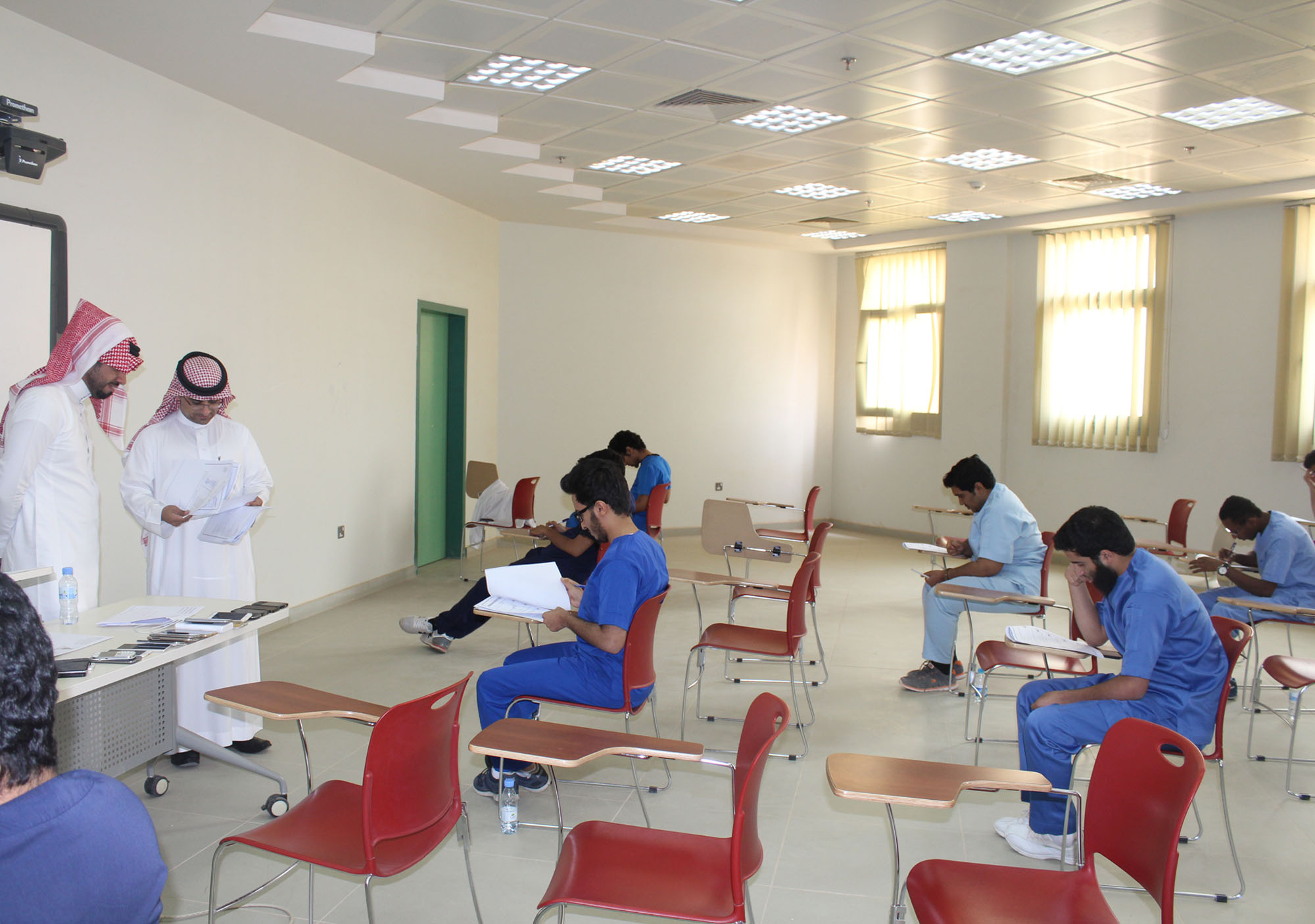 قام وكيل الجامعة للشؤون التعليمية والأكاديمية د. عبدا لرحمن بن إبراهيم الخضري بجولة تفقدية لقاعات الاختبارات بكلية الهندسة و كلية هندسة علوم الحاسب وكلية العلوم الطبية التطبيقية ، وكلية التربية بنين ، وكلية إدارة الأعمال ، وكلية العلوم والدراسات الإنسانية، واطلع على سير الاختبارات وجاهزية القاعات الدراسية، كما أشاد بجهود الكليات ولجان الاختبارات في تلبية احتياجات الطلاب وتوفير البيئة المناسبة لهم مما يعينهم على تأدية اختباراتهم بيسر وسهولة ، وحث د.الخضيري الطلاب على الجد والاجتهاد في هذه الأيام التي تعتبر حصاداً لما بذله الطالب في هذا الفصل الدراسي من جهد في التحصيل العلمي، كما وجه لجان الاختبارات على أهمية تنفيذ جميع اللوائح والقوانين المنظمة لأداء الاختبارات .