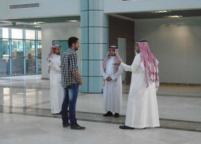 بعد ذلك تجول سعادته في جميع مرافق الكلية مطلعاً بشكل مباشر على جاهزية القاعات الدراسية وسعتها الاستيعابية والأقسام والوحدات والمعامل ، والمكاتب الإدارية لعمادة الكلية ، وقام بالاستماع لشرح تفصيلي عن المبنى وعن المدة المتبقية لاستلامه ، وأكد على حرص معالي مدير الجامعة د.عبدالرحمن العاصمي الشديد على الالتزام بالمواعيد المحددة وعلى سرعة الإنجاز ضمن المواصفات والمقاييس المعتمدة.