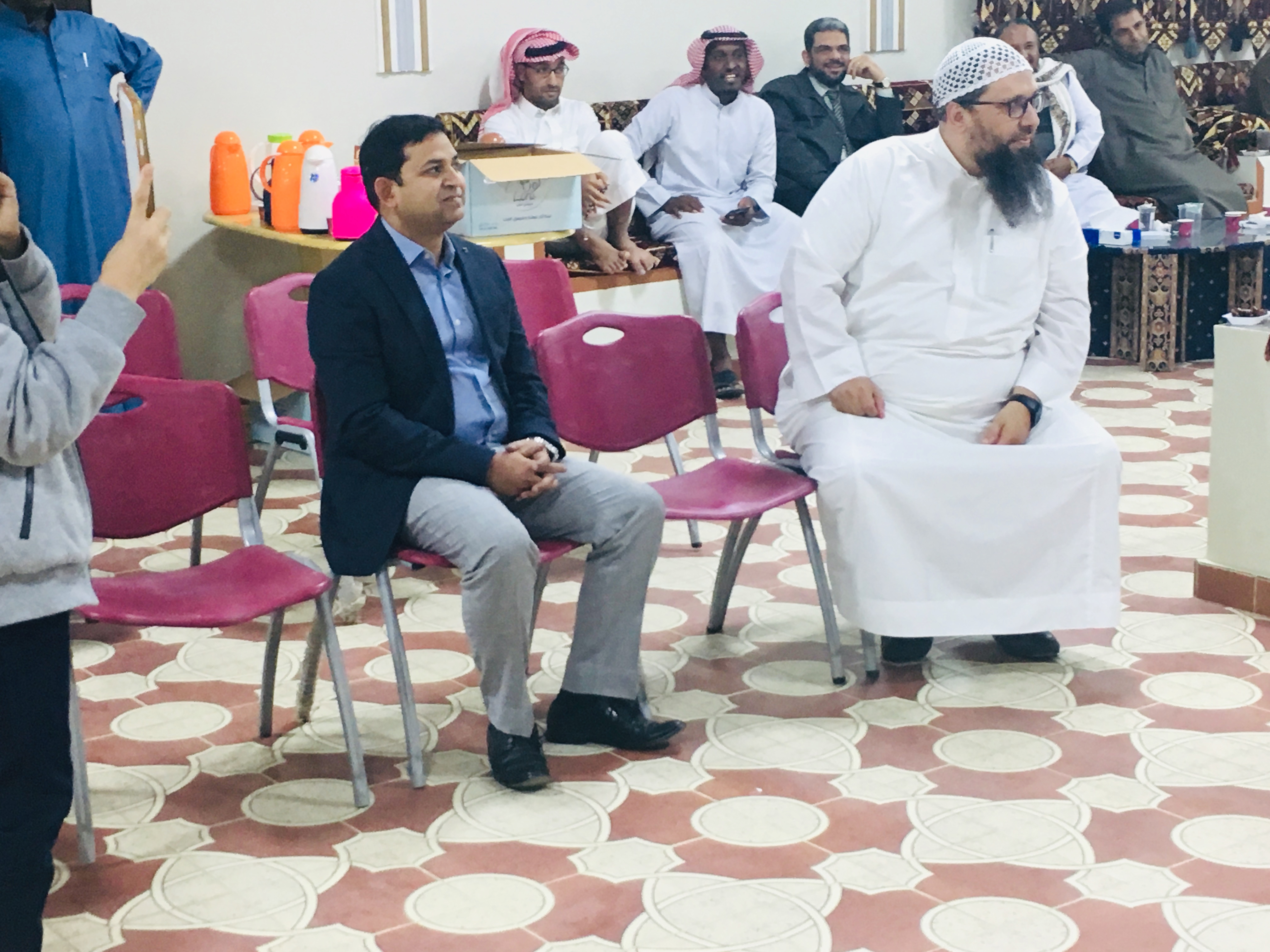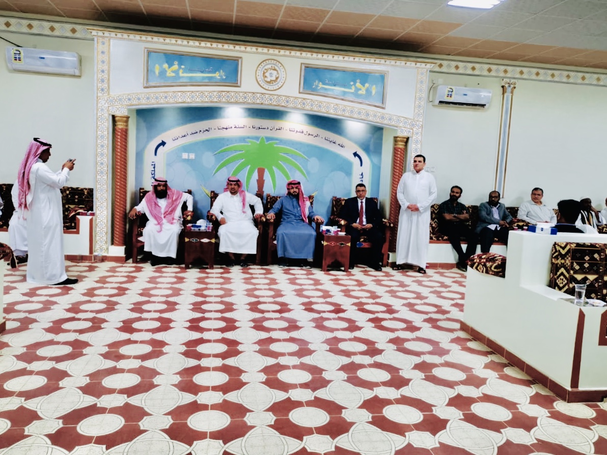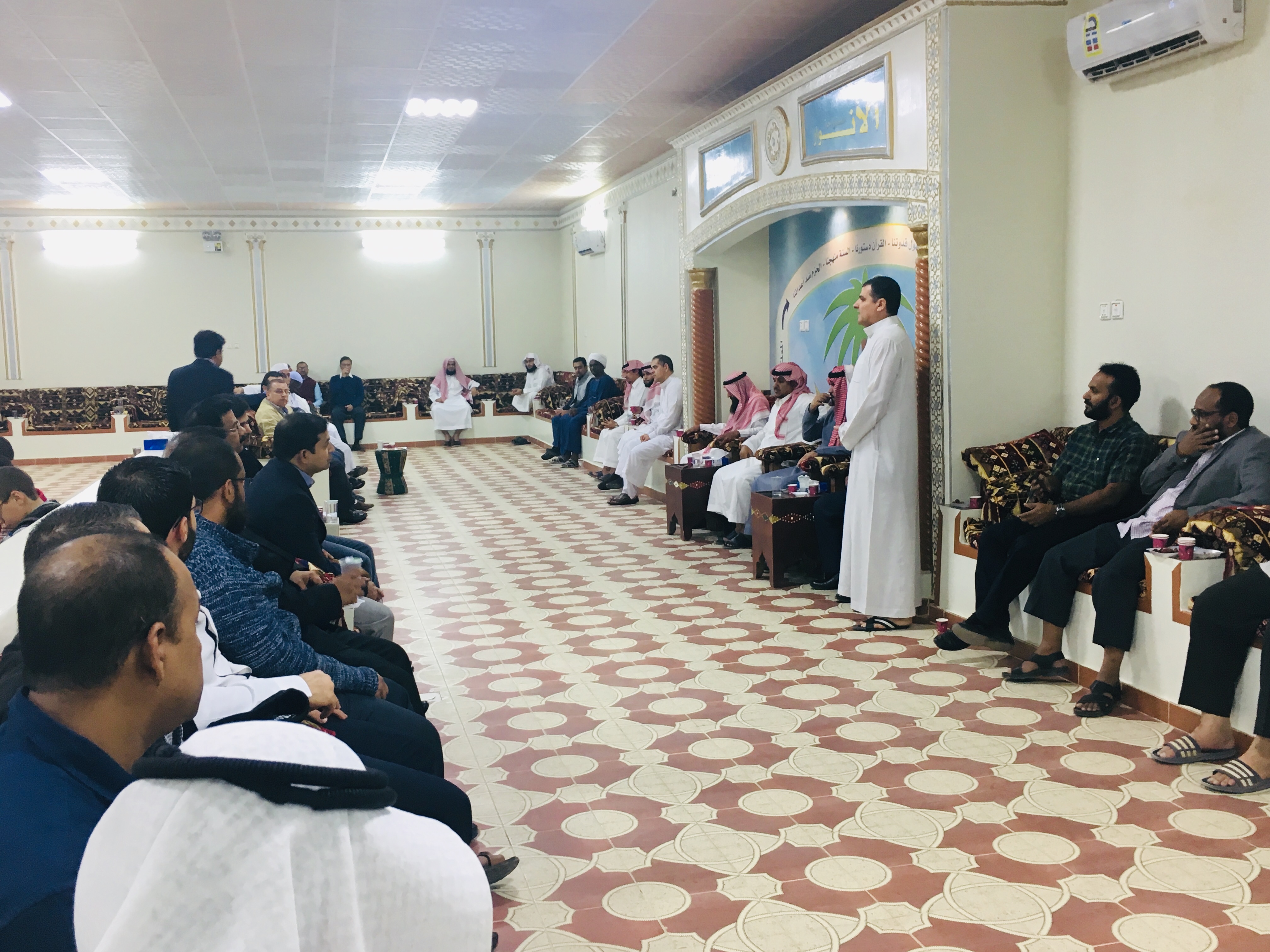 في لقاء ودي وبحضور وكيل كلية الآداب والعلوم بوادي الدواسر الدكتور/ عمر بن نوح المطيري ورؤساء الأقسام وعدد من منسوبي الكلية من أعضاء هيئة التدريس وإداريين الكلية وذلك بمقر الأنشطة الطلابية بمحافظة وادي الدواسر .