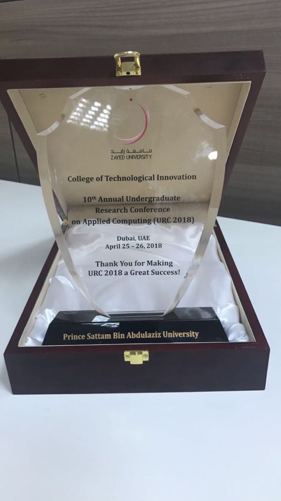 استقبلت سعادة وكيلة الجامعة لشؤون الطالبات يوم الخميس 27/11/1439هـ طالبات كلية هندسة وعلوم الحاسب اللاتي مثلن جامعة الأمير سطام لتكريمهن نظير مشاركتهم في المؤتمر السنوي العاشر للبحوث الجامعية في مجال الحوسبة التطبيقية بجامعة زايد ببحث عنوانه :
